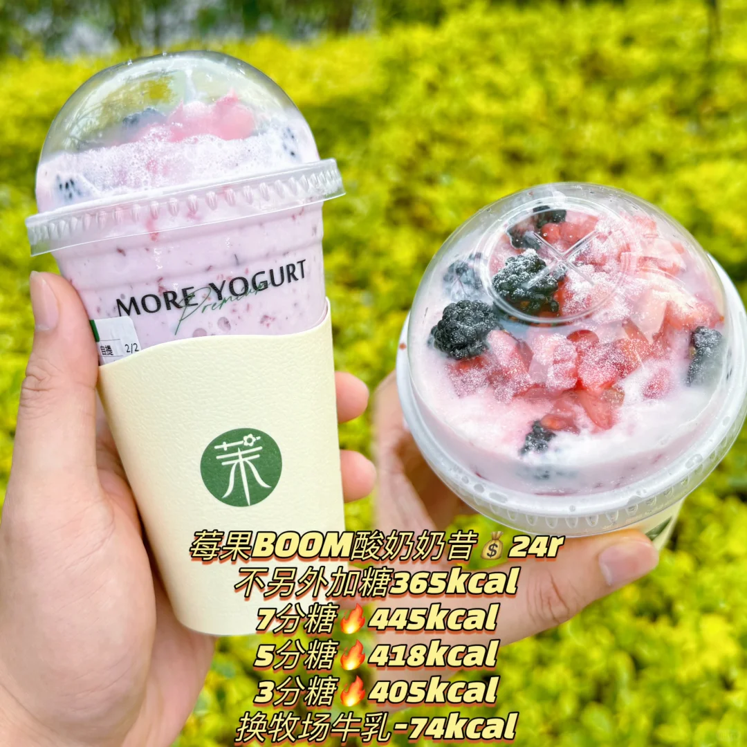 [太阳R][太阳R][太阳R]早早早,元气满满的一周开始啦! 这周可多好吃的了,一堆堆好吃的准备更新![满月R] 茉酸奶 茉酸奶新品 茉酸奶热量 不肉 热量 热量测评 莓果BOOM酸奶奶昔 嘿·凤梨酸奶奶昔