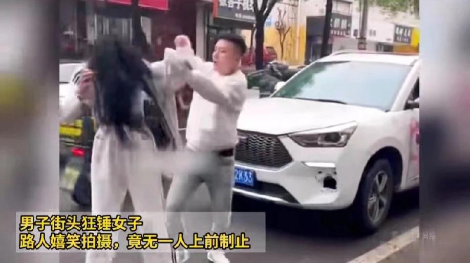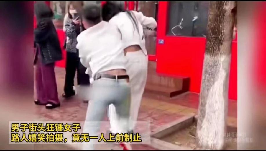 女子被打的连话都不会说了,也没向周围的旁人求救,可周围的路人有好多人呀。有人忙着拍视频,听声音是男的,但他们只在嬉笑怒骂,没有上前制止。