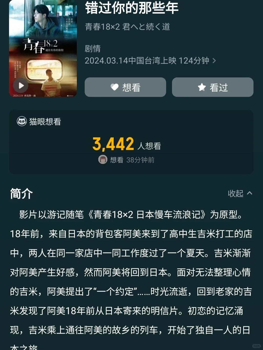许光汉主演的电影《青春18×2通往有你的旅程》有望引进内地院线,或将改名《错过你的那些年》。 . 🎞️:错过你的那些年 (青春18×2通往有你的旅程) 🎞️:爱情/旅行 🎞️:许光汉清原果耶道枝骏佑黑木瞳张孝全黑木华曾少宗松重丰陈妍霏 .