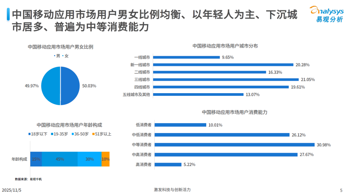 首先,用户质量很高。报告用数据给我们画出了当前中国移动应用市场用户的精准画像: