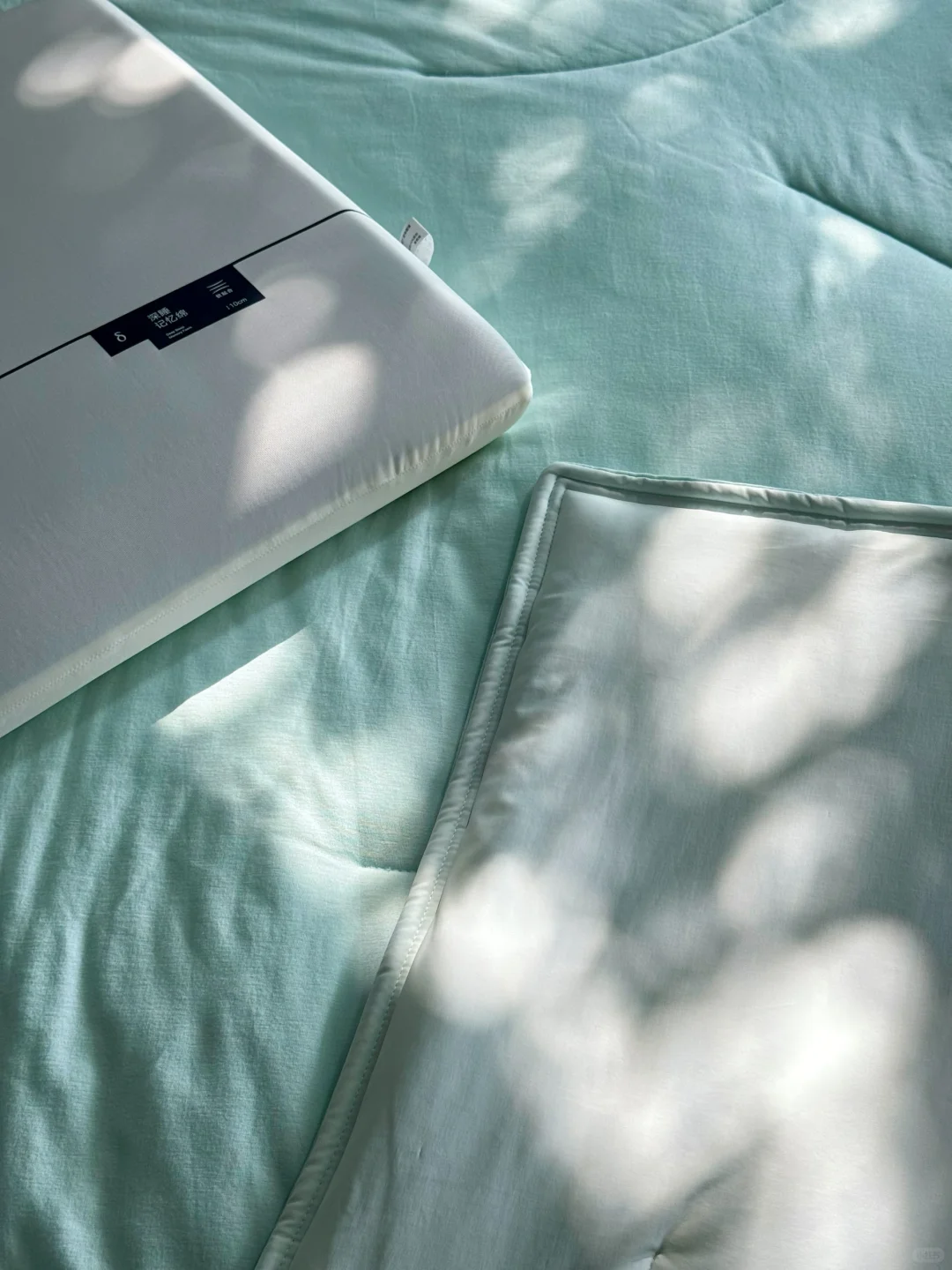 薄荷冰青色的被子一铺上