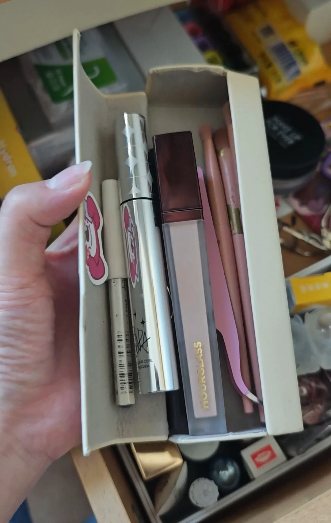 闲置的眼镜盒可以代替便携化妆包早起打工人,没有时间化妆,可以带一个简单的化妆包在身边,安全感满满闲暇的时间就可以化妆,