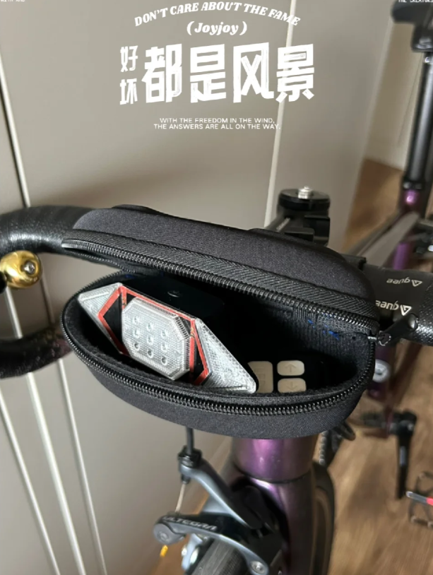 因为眼镜盒本身就是防水的所以下雨都不用担心会淋湿,看着就像是自行车自带的 一样,好物违和感,家里有不用的眼镜盒就这样利用吧。