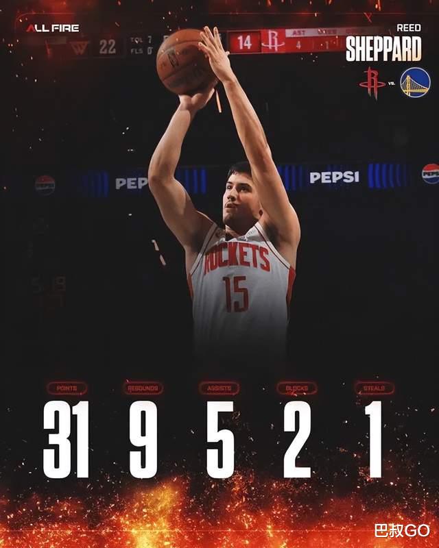 是的,又一次,过去11场比赛,除了对太阳手感一般般,其他10场谢泼德都是上来就微波炉表演。杜兰特因家事缺席两场比赛,谢泼德也确实扛住了压力,直接31+9+5,还送出2记大帽其中一球正面帽库里。这不是偶尔爆发,这已经是现象级了。