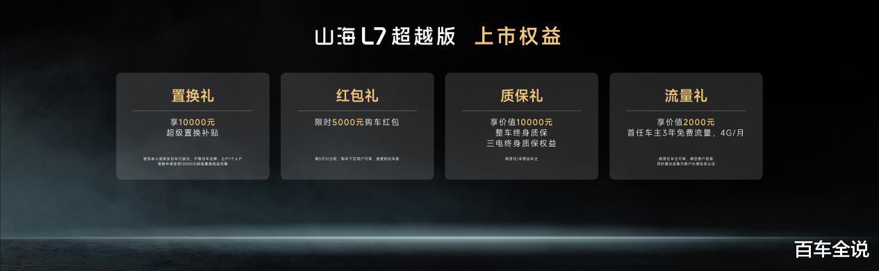 2026款捷途山海L7超越版推出3款车型,官方指导价为11.49万元-12.79万元,上市期间送上4重购车礼遇,限时抢购价9.99万元-11.29万元,助力更多家庭轻松开启向往的电混出行生活。