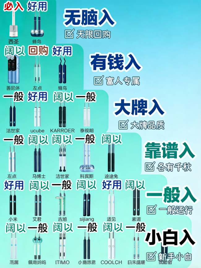 本文推荐的十大公认好的可视挖耳勺,涵盖不同场景、不同预算,从专业旗舰到入门平价,从全家共用至户外应急,每款都经过实际使用验证,品质稳定、参数准确。希望能帮大家快速找到适合自己的那一款,轻松解决耳道清洁难题,兼顾安全与实用,安心清洁每一次。