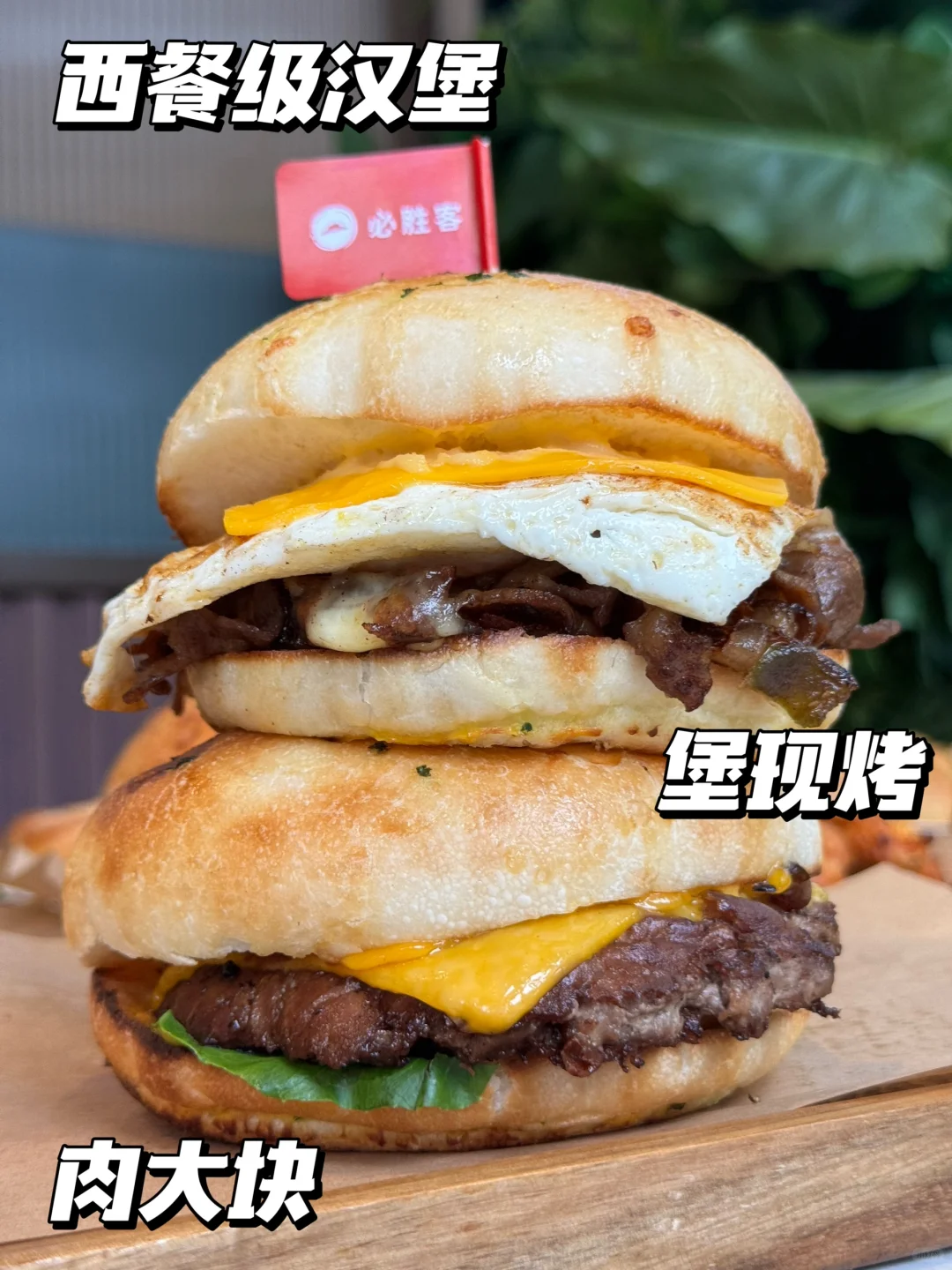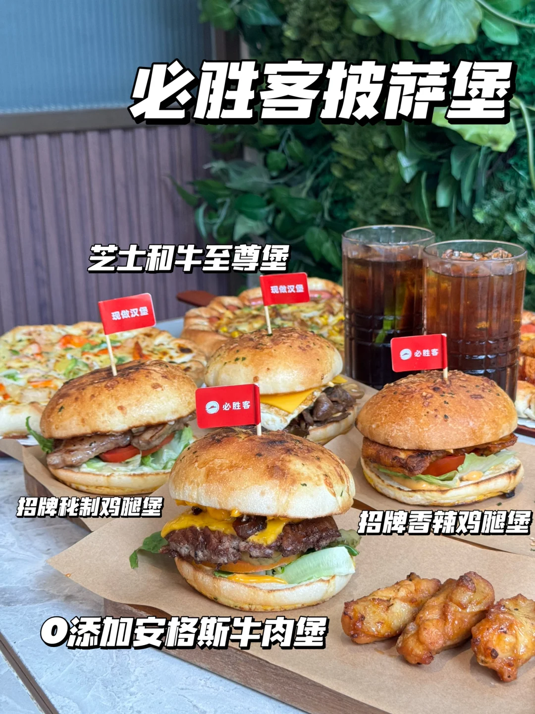 🍔新品披萨堡真的很卷,料多肉大块,独有的纯手工披萨面包个个现烤,呈现一个西餐级别的汉堡!