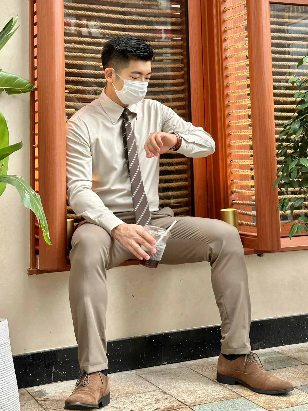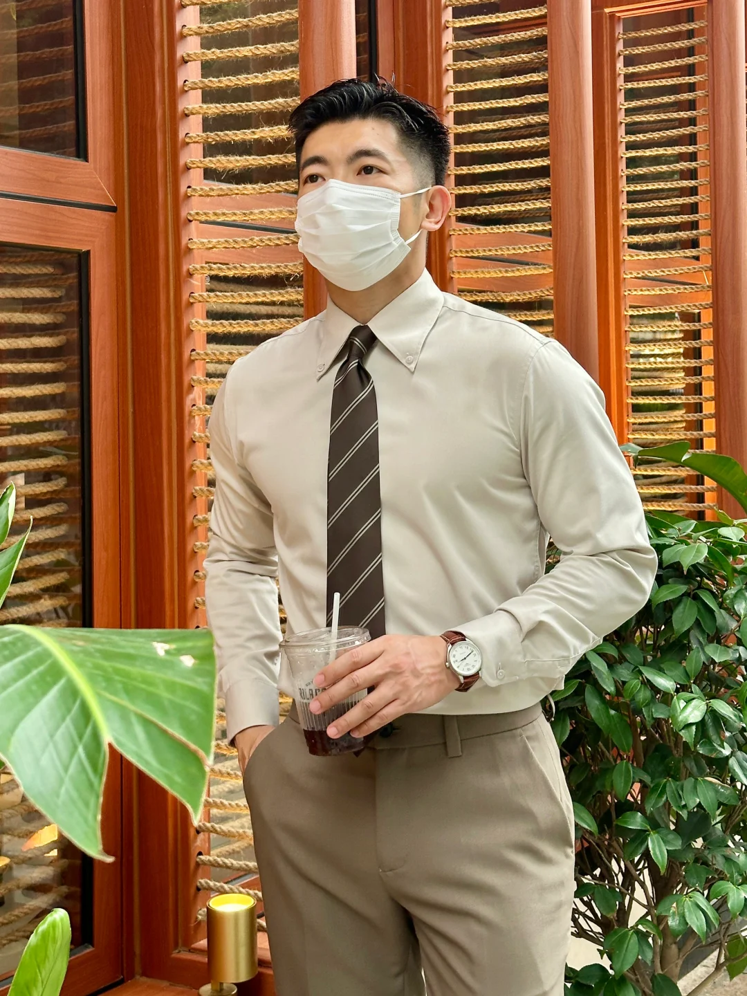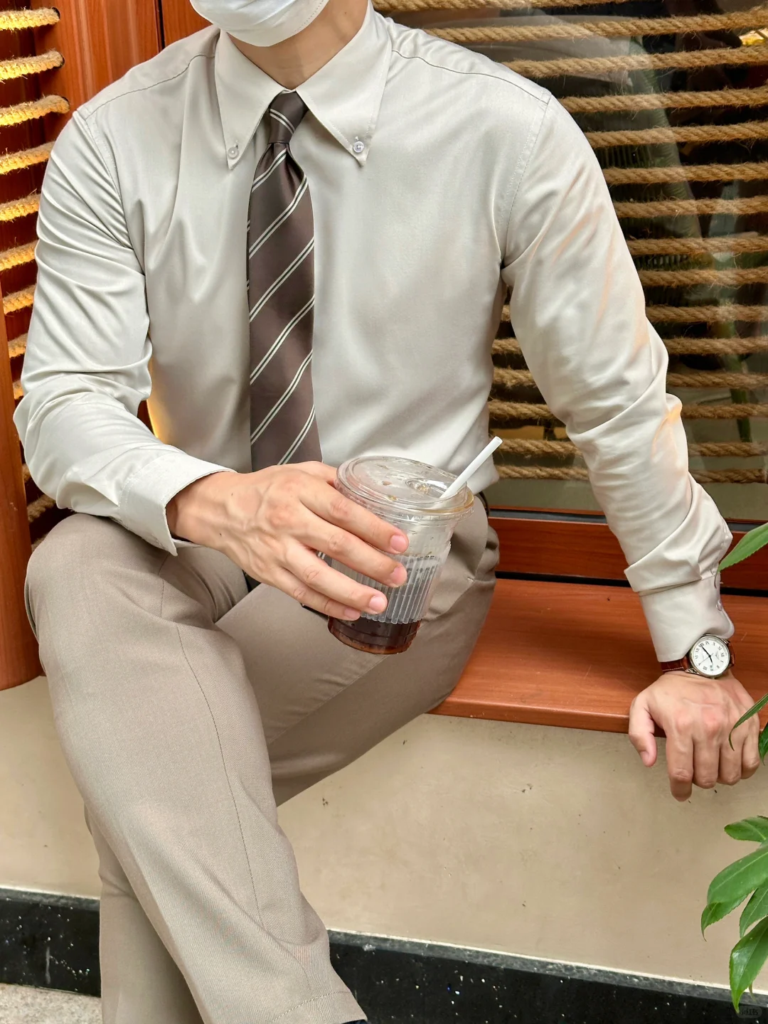 白玉色真的是男生衣柜里得有一件的颜色,区别于大家平时见到的本白,给人拉近距离的暖感,免烫抗皱的面料也是商务懒癌朋友的必备,不论是单穿叠穿都说无需多言的质感‼️