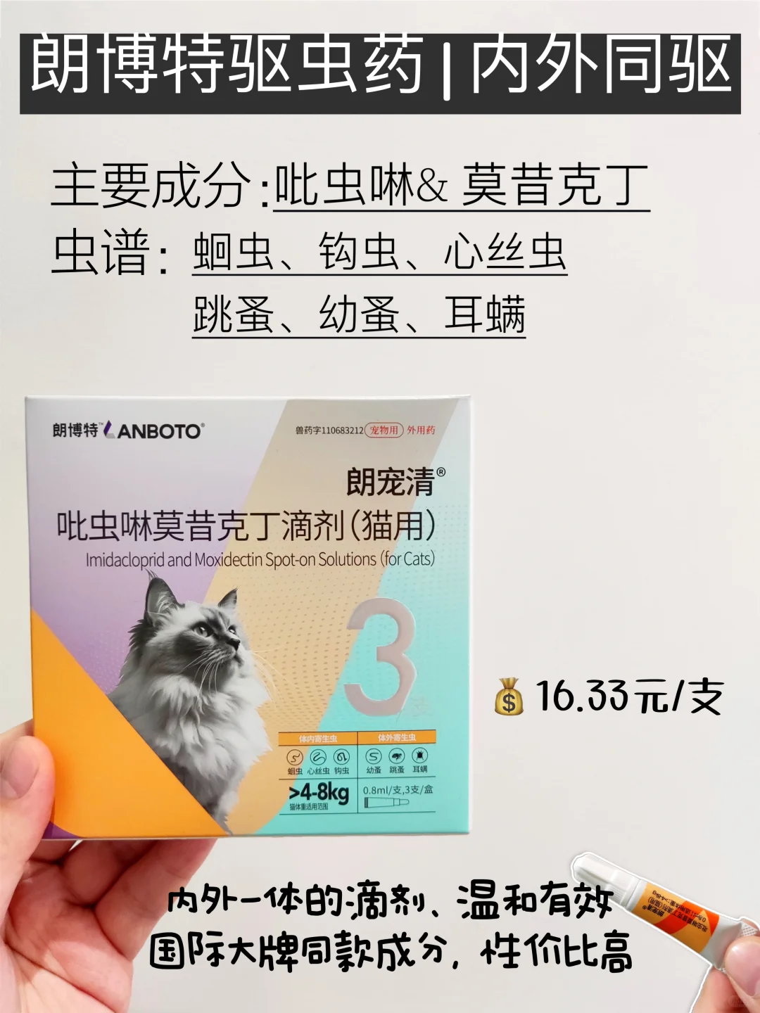采用吡虫啉和莫昔克丁成分,用下来驱虫效果还不错,温和不刺激