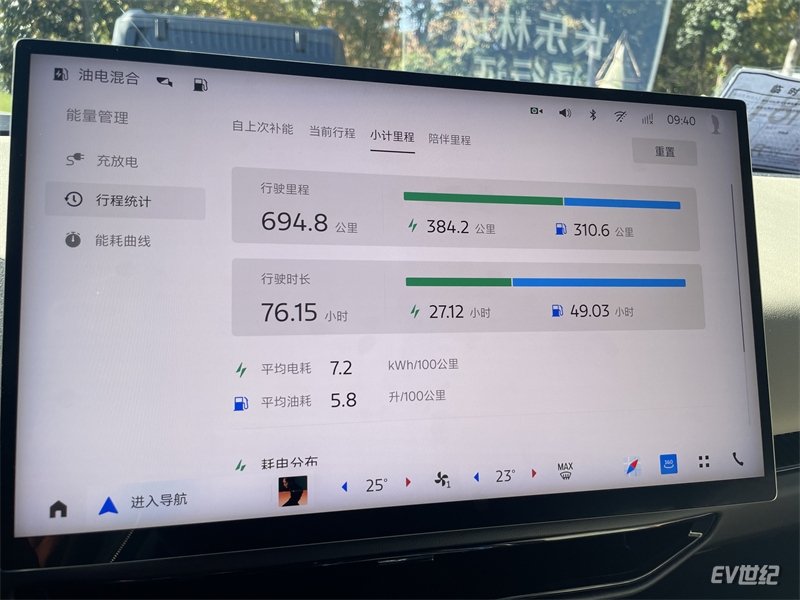 此次试驾没有专门测算能耗,但中途记录了一些能耗数据,供大家参考。上图是此次试驾的能耗,下图是这台车近期一段时间行驶的能耗。此次试驾的工况包括城市道路、高速公路和一小段山路,全程开启空调,并且还有一段原地着车拍摄,全程也设置了电量保持,但不记得具体的数值了。