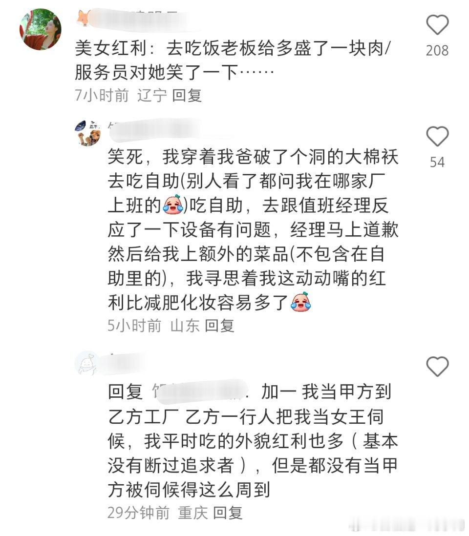 之前看到一个说法,她们口中所谓的“美貌红利”其实就跟电商打折一样,先涨价一倍,然后再打个九折,然后就以为自己是吃到了“红利”。其实你本来可以用最低的价格拿下该“商品”。
