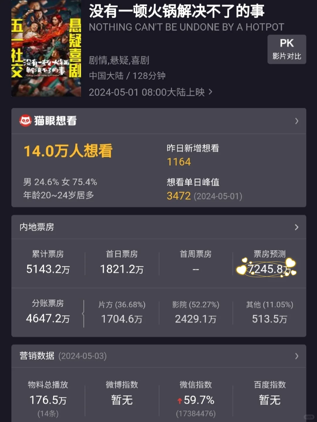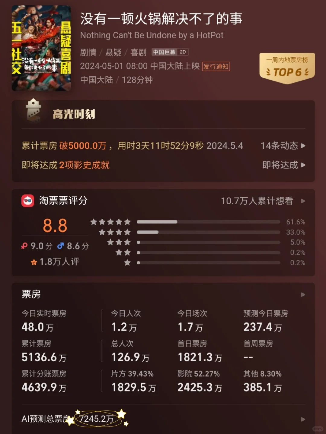 官宣撤档‼️实时票房『5000万』预测票房『7000万』没有一顿火锅解决不了的事 破亿失败似乎已成定局。 当时路演看的时候感觉电影还行啊!没想到票房如此低迷。 不过该说不说,杨幂戏中这个红发造型真的很飒!电影里出场那一瞬间很是惊艳! .