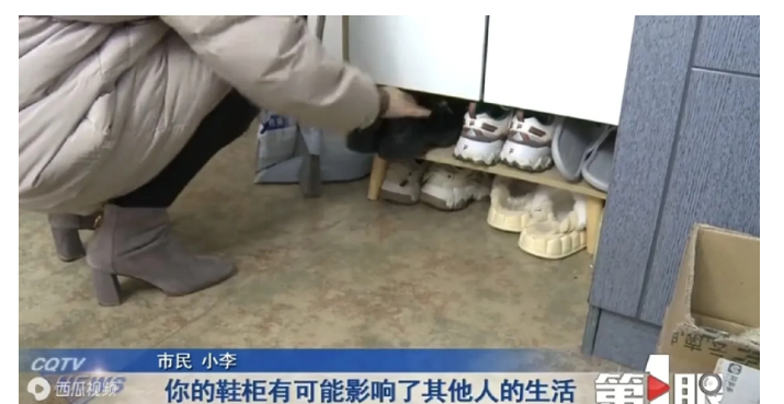 当然,女子把鞋柜放在门外的行为也是一种违法行为。