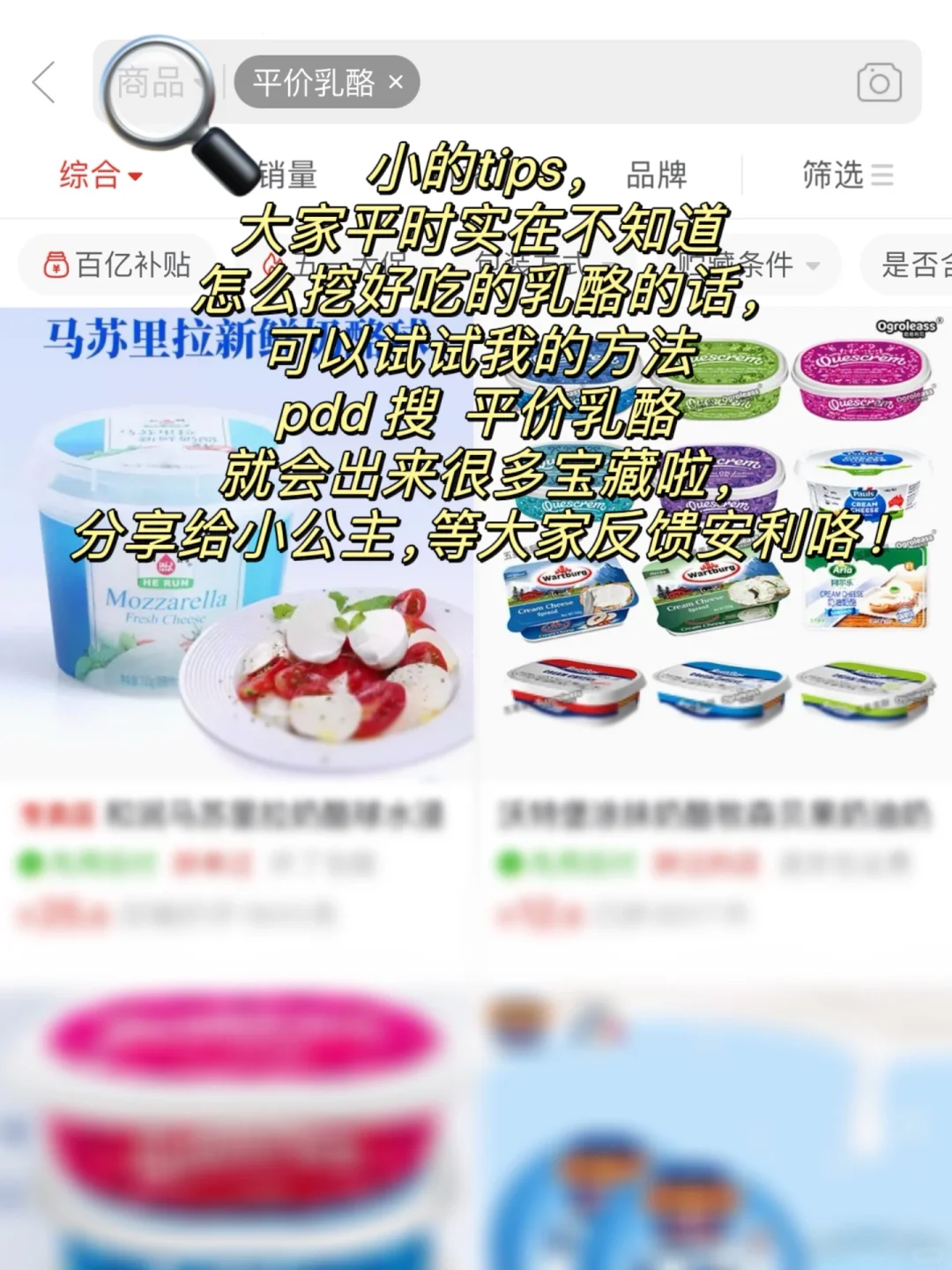 小的tips,大家平时实在不知道怎么挖好吃的乳酪的话,可以试试我的方法 pdd 搜  平价乳酪  就会出来很多宝藏啦,分享给姐妹,等大家反馈安利咯!
