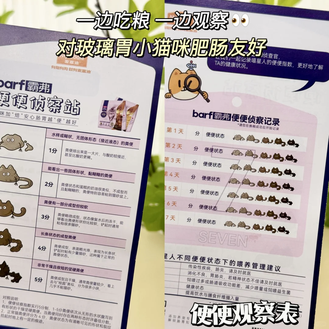 😍综合测评下来!这是一款配方优秀、特别针对肠胃问题猫咪的实力养胃猫粮,7天改善软便,为了让铲屎官更好观察自家猫咪的排便情况,麦富迪还送了便便测试表,真的对自家产品足够自信!玻璃胃猫咪真的可以试试