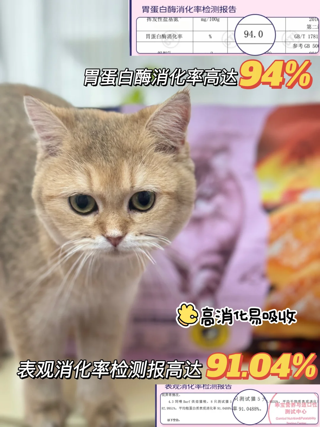 ✅双消化率保证,为了帮助猫咪更好吸收营养,这款猫粮还采用了鲜肉乳化酶解工艺,表观消化率91.04%,胃蛋白酶消化率94%,这个数据在国产猫粮里是尖子生了!家里猫猫肠胃消化不太好的建议入手!