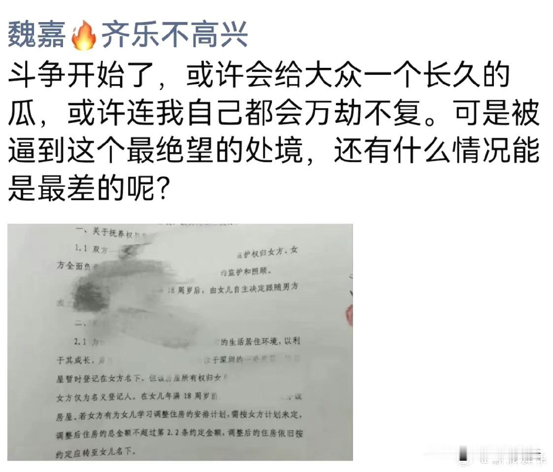 多年的青春喂了🐶!魏嘉晒出和高亚麟的抚养协议,协议约定女儿跟魏嘉,深圳一套房产归魏嘉,但魏嘉只是登记人,所有权在女儿名下。
