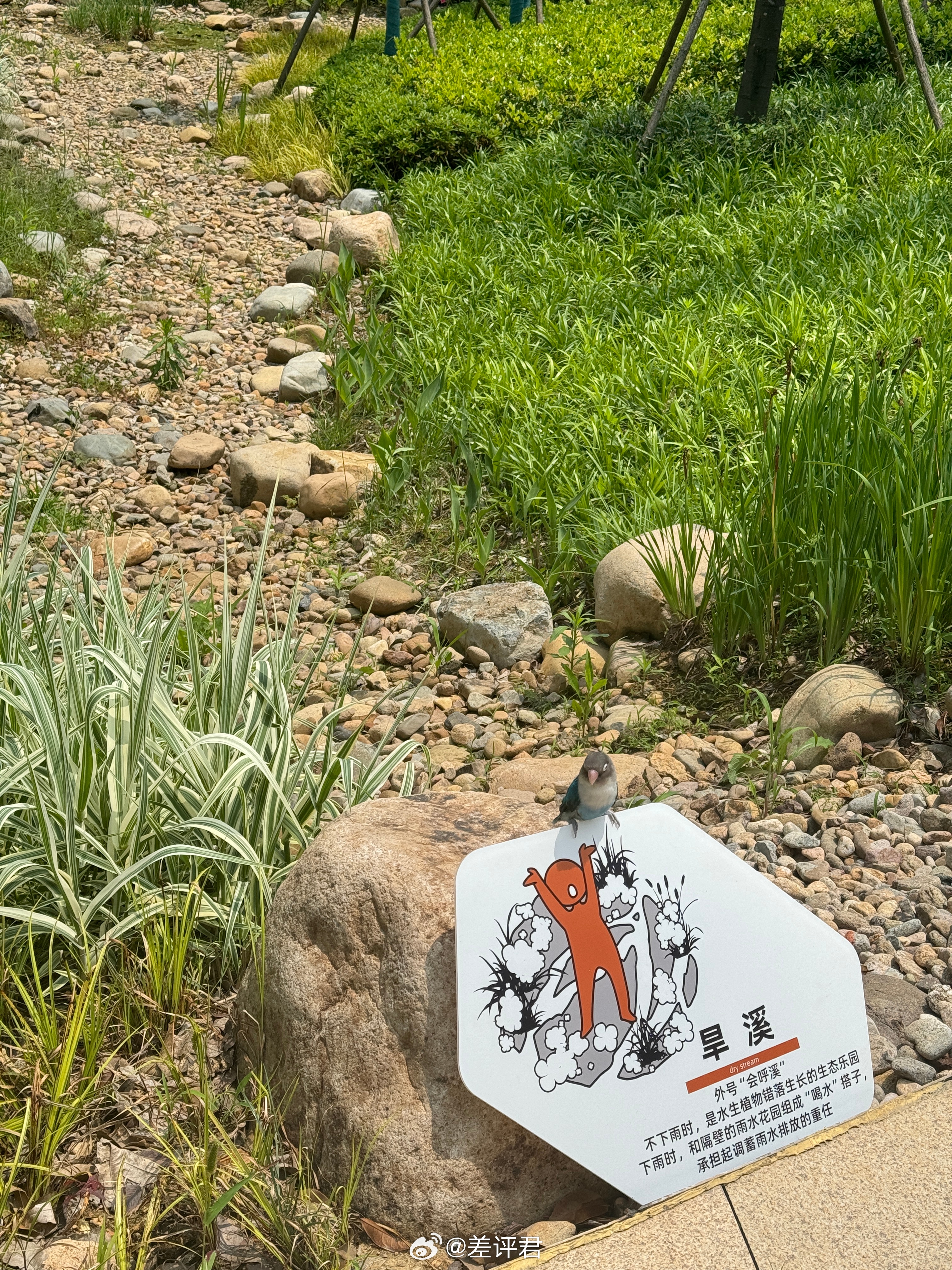 广场的各种植被小花园是最特色的,主打一个循环再利用,用旱溪、雨水花园,将雨水利用起来打造景观,而不是弄那种自来水的喷泉。还特意为小鸟们种了十几种果树,专门给他们吃的。整个鸟语花香。