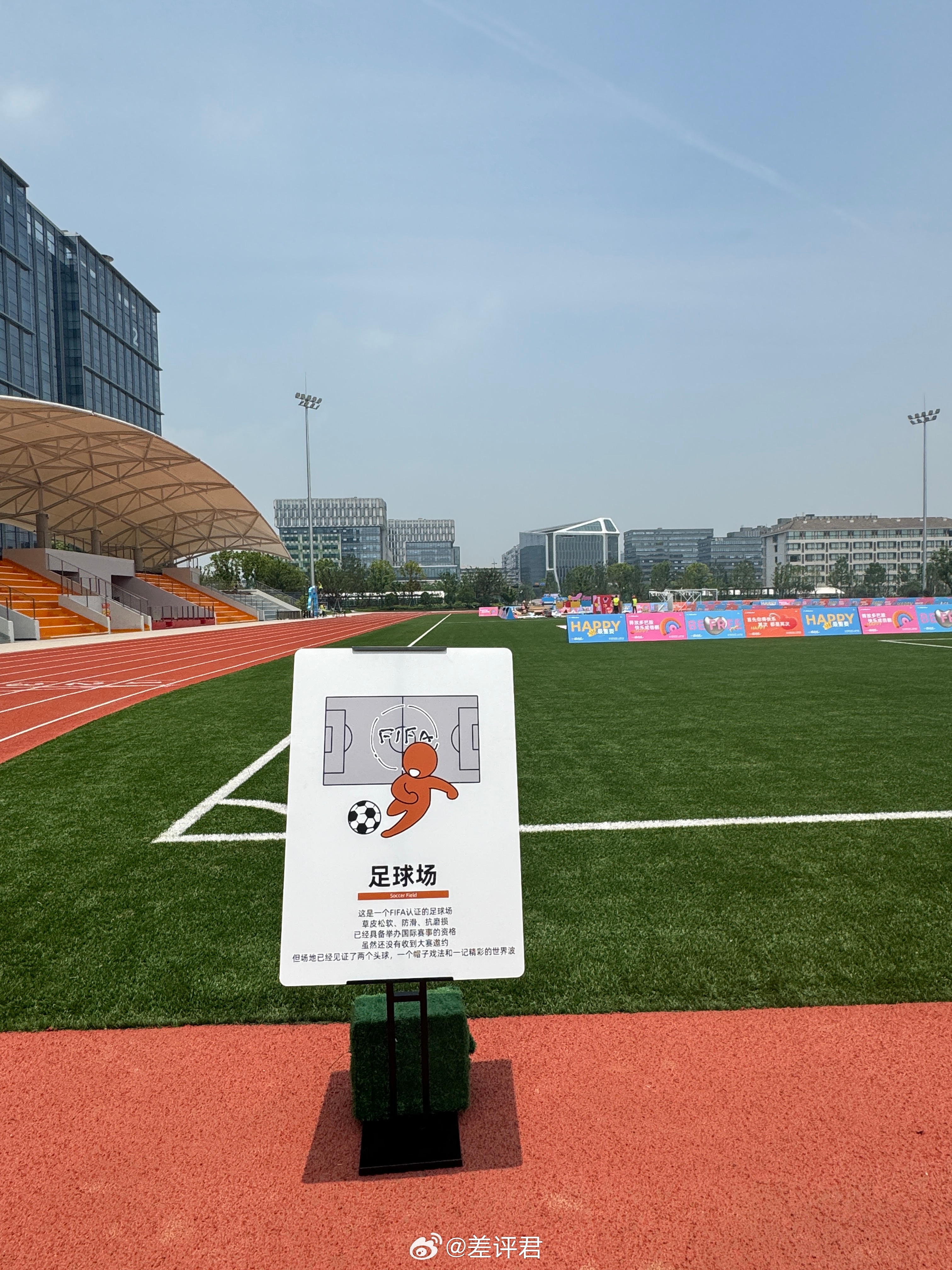 首先它真的很大,从门口到最里面那栋楼我都想打个车了。所以园区各个角落都有共享单车,算是锻炼身体了。说到锻炼身体,他们还整了个跑道和足球场,草皮挺好的。