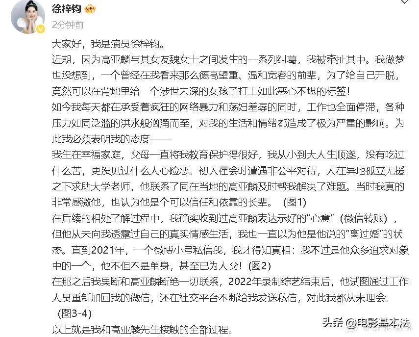 被高亚麟形容是🐔的徐梓钧回应了,内容相当炸裂!