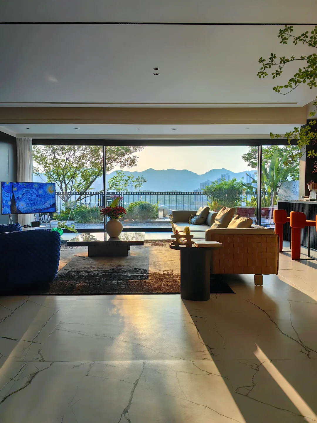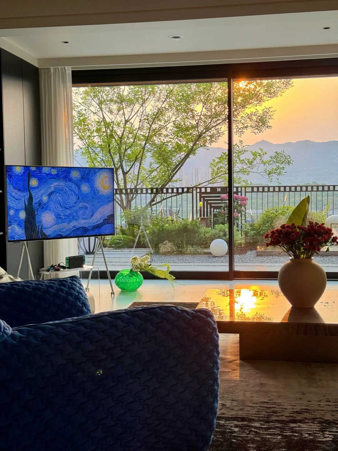 室内布置不会经常变动,但窗景⛰️会变,大落地窗让室内外交融,一年四季🍂🌳🌸风景都不同