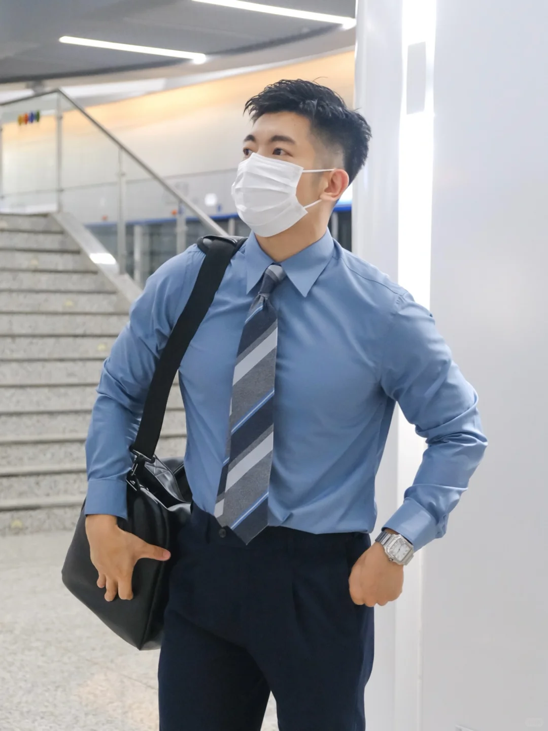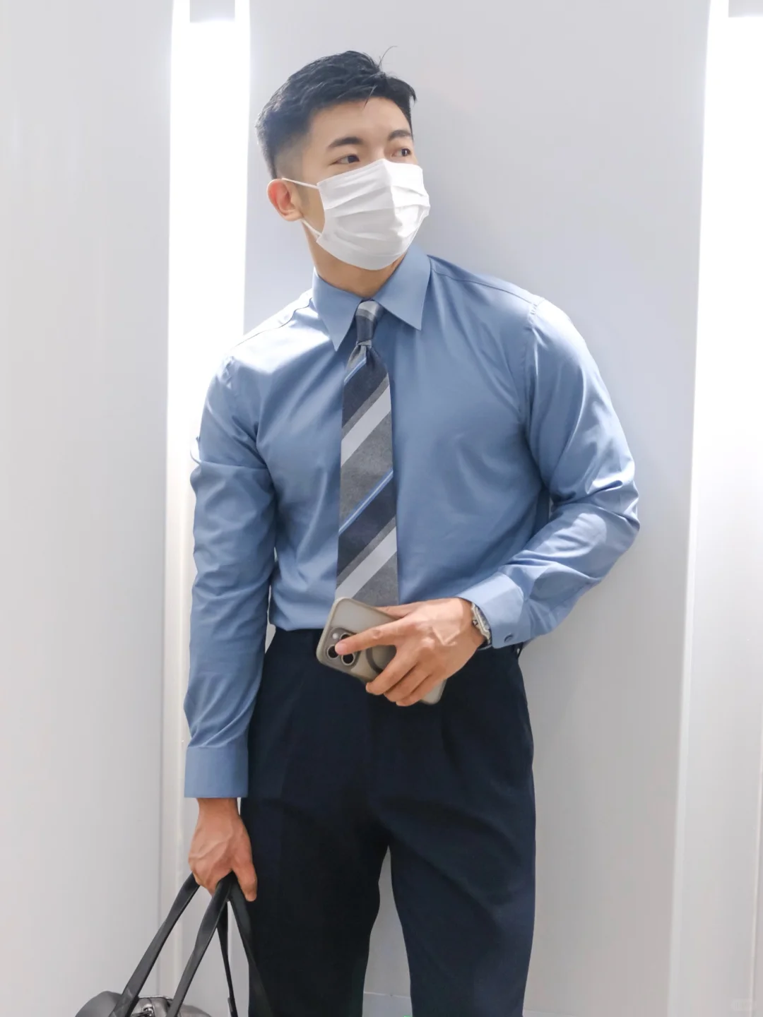 男士通勤一件🔵闪蓝色衬衫足矣‼️