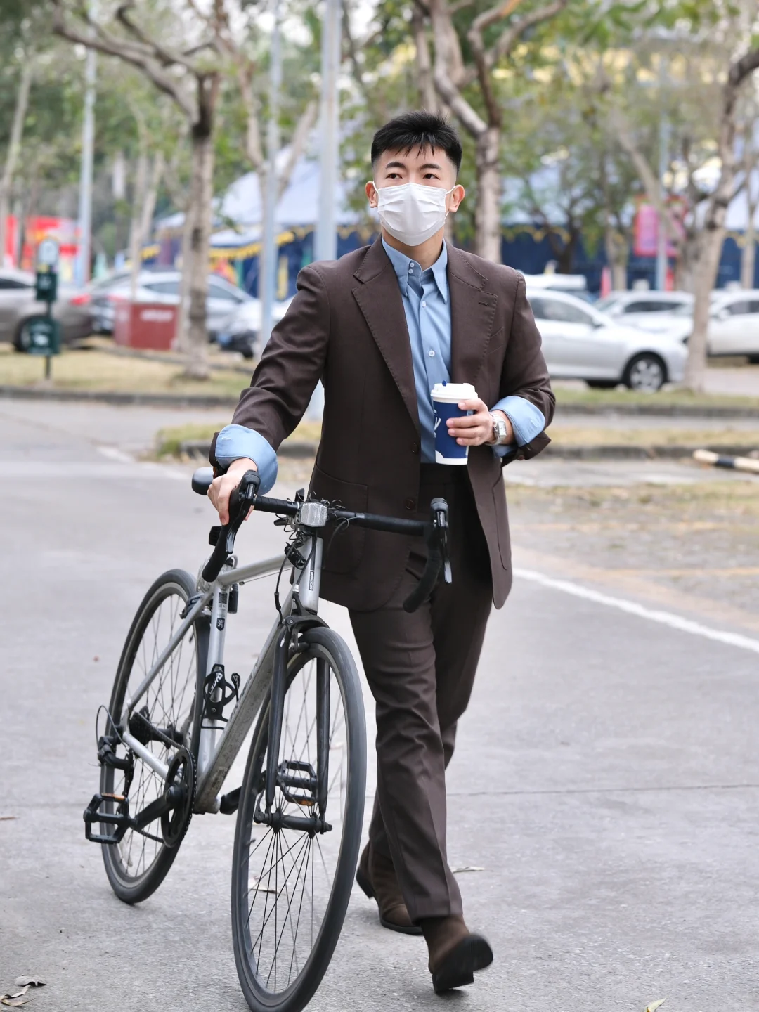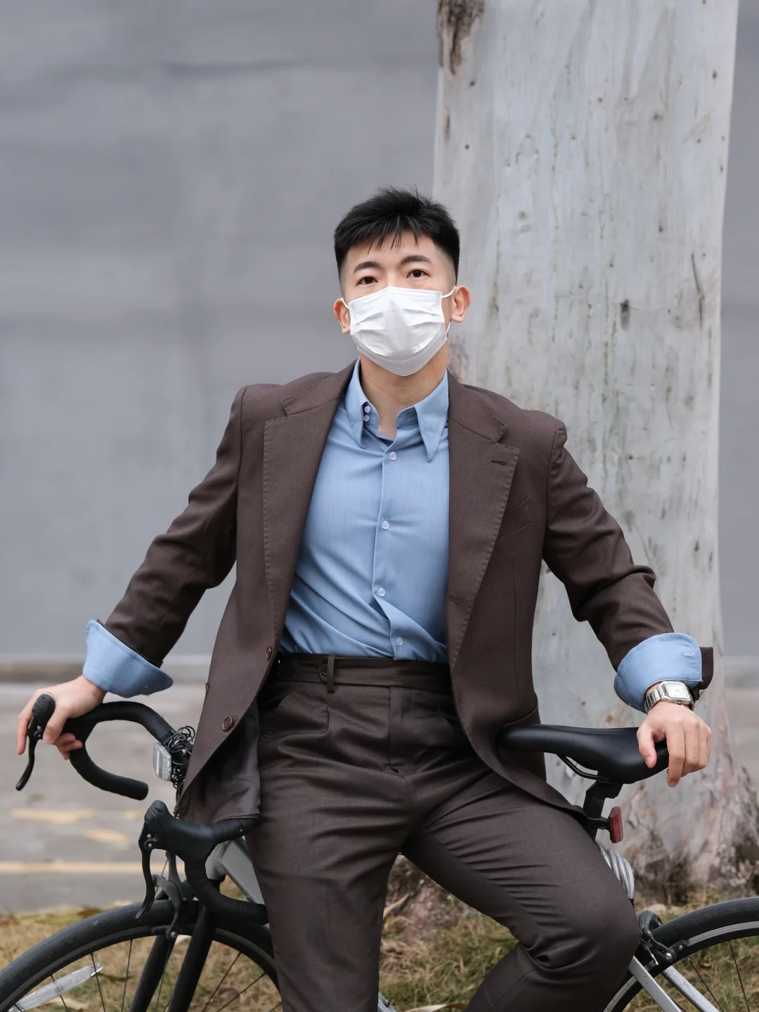 正装🤵🏻穿搭真的不只是一丝不苟的一面,还有挽起袖子放松休闲的一面,最近经常上身的亚麻棕色就是近期心头爱,颜色小众的同时质感满满,能满足于我在上下班的场合来回穿梭✅