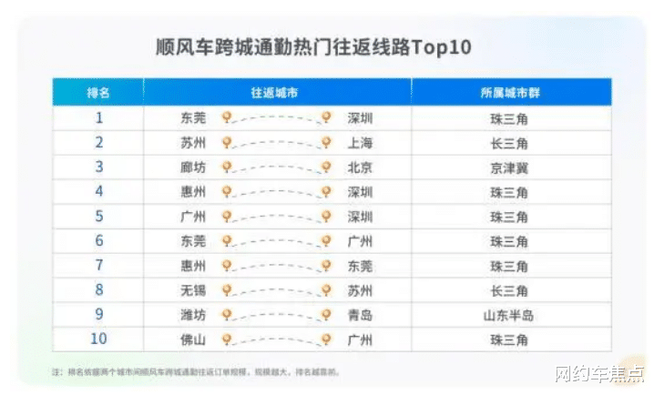 以前总觉得跨城上班麻烦,现在东莞到深圳、苏州到上海、廊坊到北京这些线,都是顺风车最火的 Top10,光珠三角就占了 6 条。