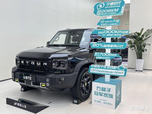 捷途山海T2定位“旅行越野超混SUV”,以“纵横之道”打造经典“方盒子”造型,成为公路上的另一种硬派美学风景;性能方面,则基于奇瑞鲲鹏超能混动C-DM技术打造,配备超大容量电池,拥有核潜艇级安全性能。捷途山海T2上市仅半年,便强势登顶混动越野“方盒子”全国销冠。