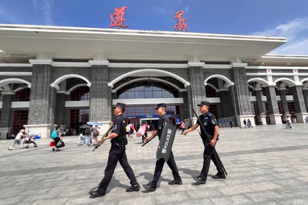 双节期间,遵义高铁站迎来客流高峰,日均发送旅客量大幅攀升。新蒲公安提前部署,特巡警大队和派出所形成防控合力,在站前广场、进出站通道等重点区域实行“定点值守+流动巡逻”模式,最大限度提高见警率与管事率。执勤民辅警不仅严查可疑人员与物品,更化身“贴心管家”,在警务站以及岗亭备好急救包、便民伞、充电器等物资,累计接受旅客咨询百余次,救助困难群众数名,帮助找回遗失物品十余件。“看到警灯亮着,心里就踏实了!”一位返乡旅客的话,道出了万千旅客的心声。