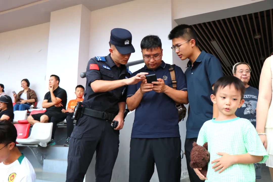 一边是文化盛宴,一边是体育激情,新蒲公安同步筑牢两大活动安全防线。在芳华里3536文创园中秋游园会现场,民辅警采取“步巡+定点守护”方式,穿梭在猜灯谜、品月饼的人群中,及时疏导密集客流、维护现场秩序、解答游客咨询等。