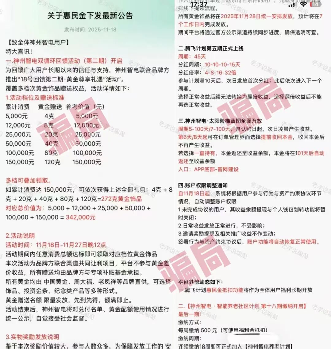 “神州智店”又开启了新一轮收割。推出“黄金”、“腾飞计划五期”、“阶梯蓝图”等多个产品,强制要求参与者认购并完成资产约束协议,否则将无法提现。
