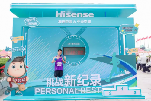 海信空气产业还在起终点处精心设立互动展区,打造了一场集科技、趣味与健康于一体的沉浸式品牌体验空间,不仅为参赛选手和观众带来了轻松愉悦的互动乐趣,更巧妙融入了海信“海信智慧风 领跑每一步”的品牌理念,掀起一阵健康、科技、活力兼备的“冠军风”。展区特别设置PB纪录刷新拍照区和东营马拉松拍照区,跑者都可以定格下东营的难忘马拉松时刻。