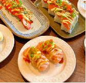 寿司现场制作,一定要点他们家的特色脑花寿司,店里还有好多店主私藏的中古玩具,拍照打卡也很出片!