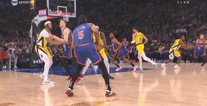 尼克斯和步行者的天王山之战,看看火药味吧,这才是生死战的强度! 鞋子都掉了;