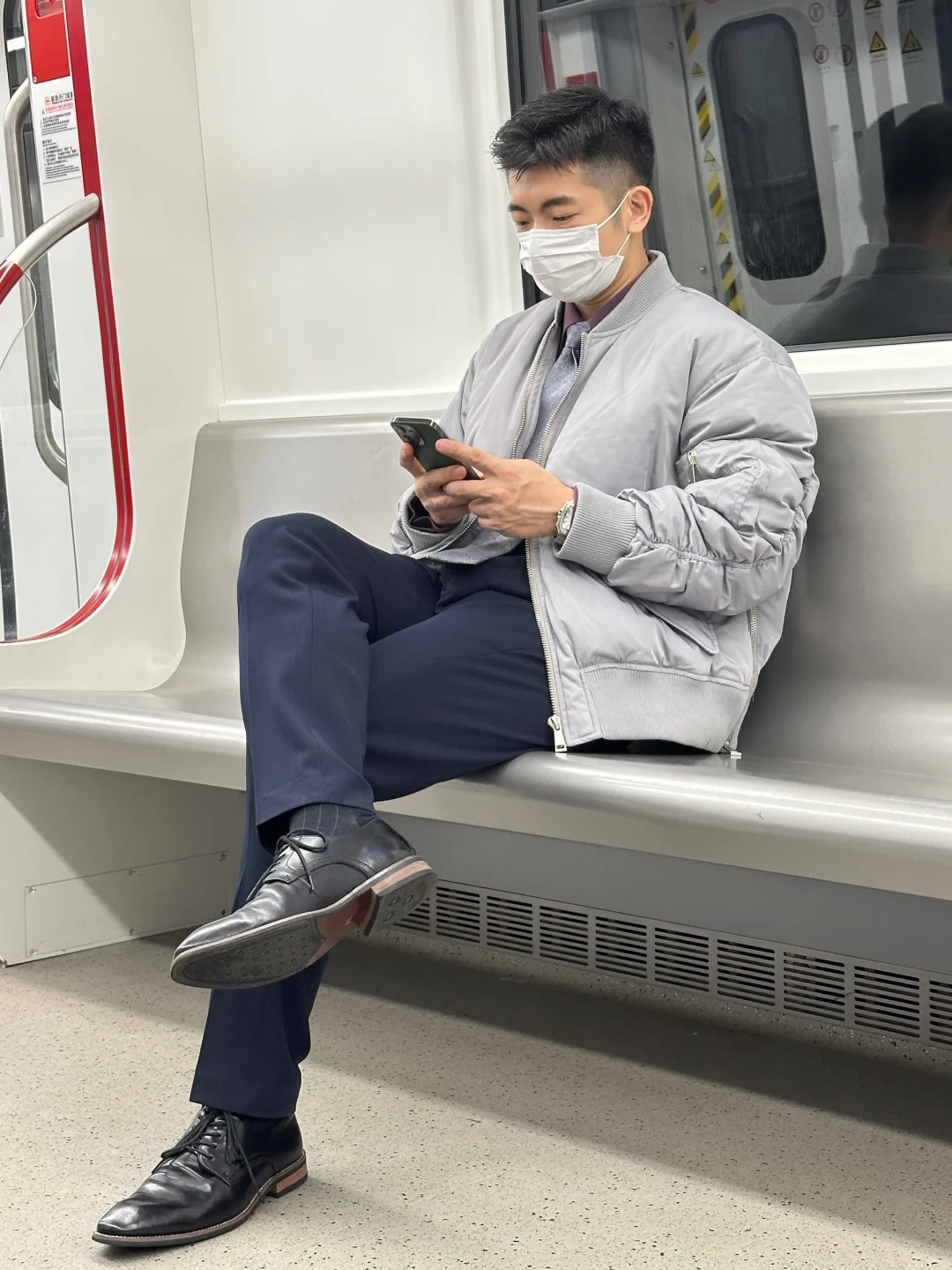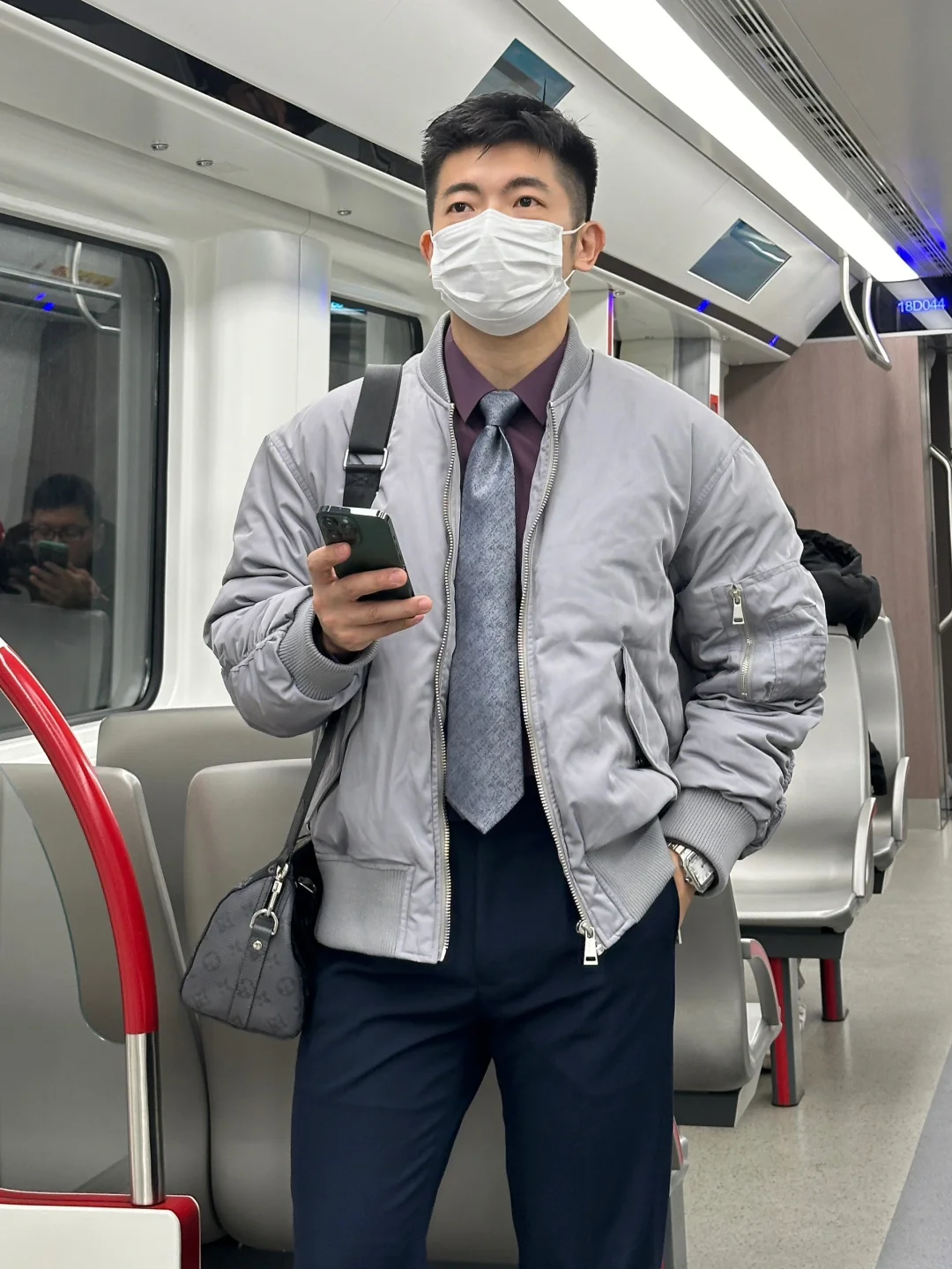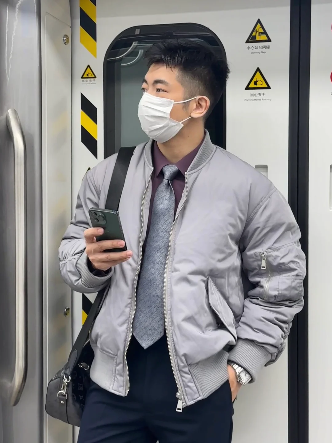 职场通勤不想穿得太臃肿,也要温度合适,这款羽绒夹克搭配简单衬衫西裤就可以实现三分钟出门了。浅灰色调很多男生都可以驾驭,搭配别的颜色也是轻松上手,经典的飞行员夹克版型搭配衬衫、卫衣、高领衫都可以。