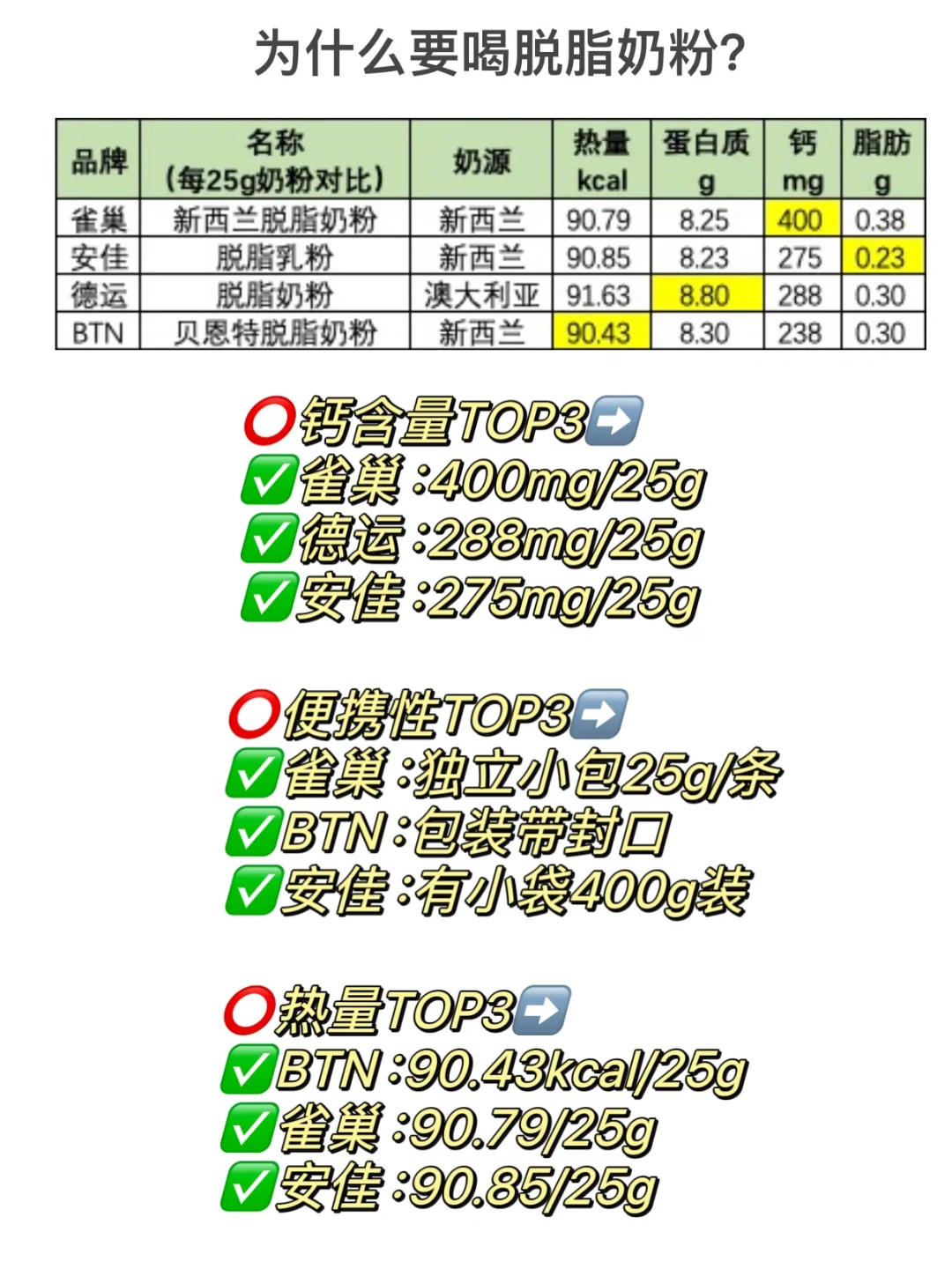 总的来说在选择上脱脂奶热量还有蛋白质都差不多,从钙含量,还有便捷度选择上雀巢这款小绿条让减脂脑袋爱不释手!