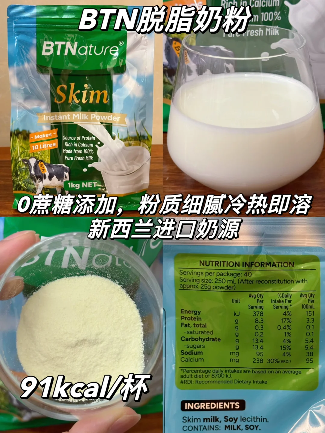 4️⃣BTN新西兰脱脂奶粉:0蔗糖添加,微微甜感,牛奶比较浓稠!