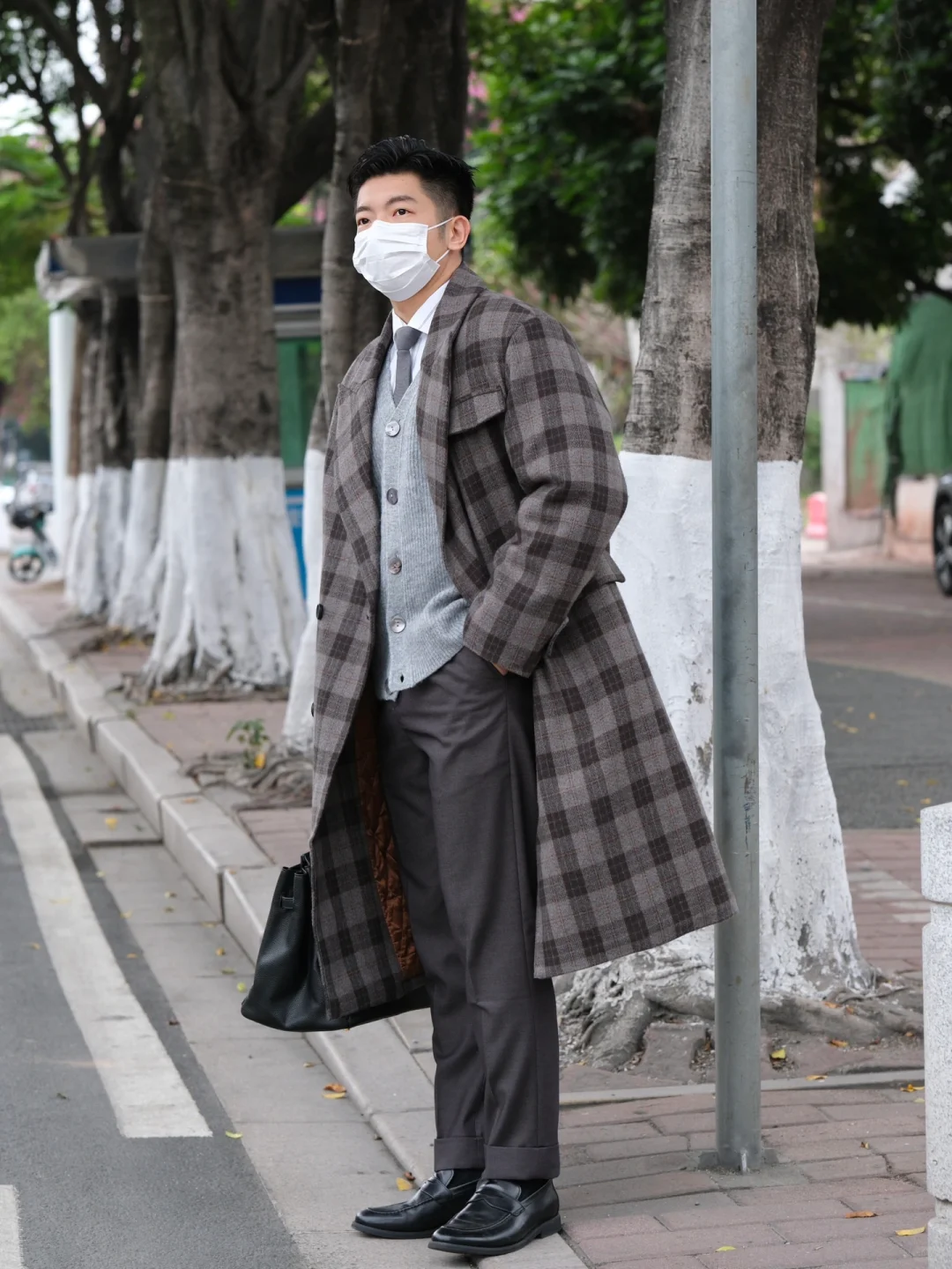反正我们这边基本上没看到,估计会穿也是冬天小姐姐们才有的穿搭。特别是这种韩版大衣,上身自带双开门效果,怪不得韩剧男主们都各种大衣。
