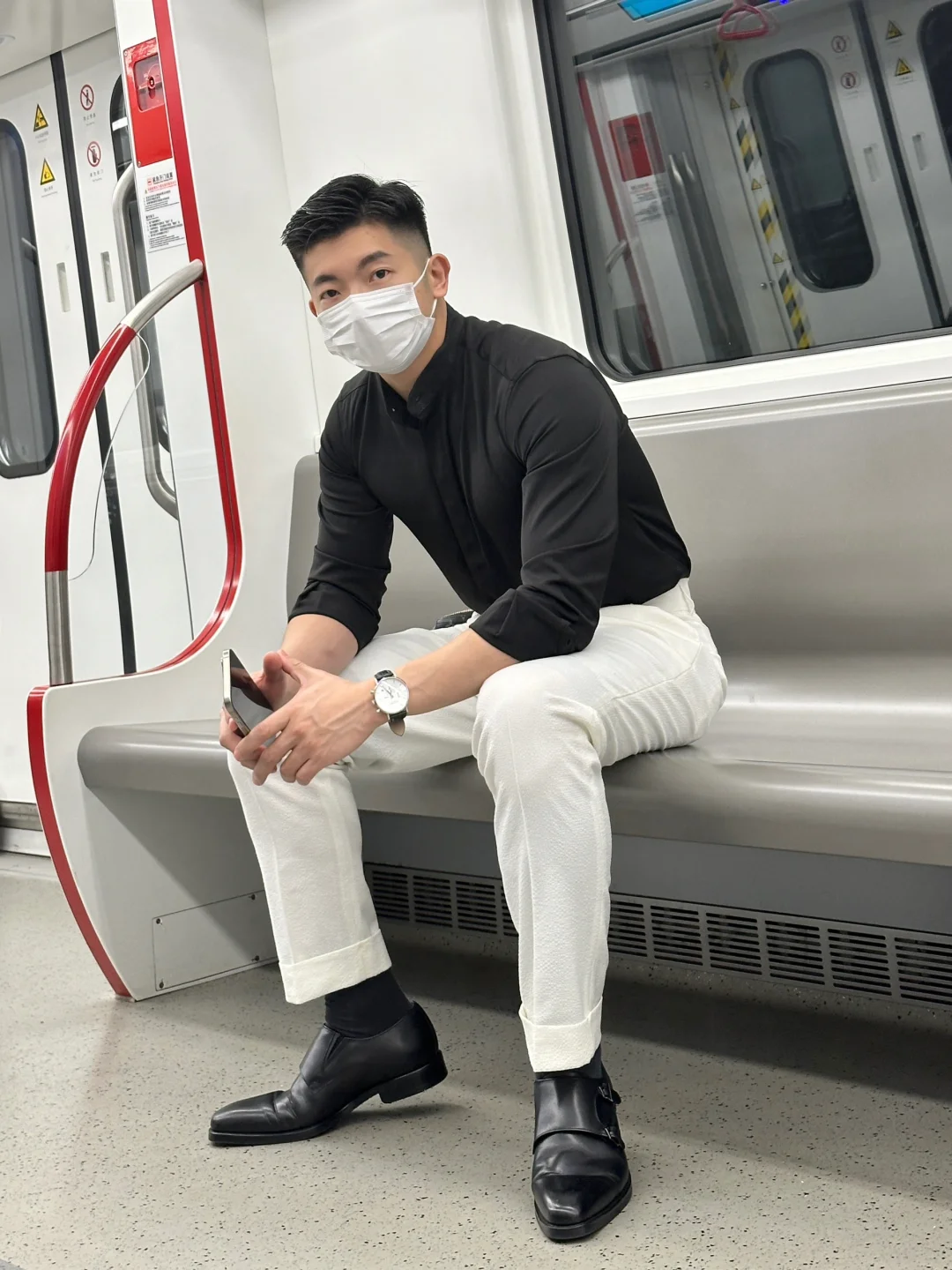 最近的新中式中华娘火了一圈,我这个当叔叔的也是尝试一下新中式衬衫,上身确认是利落精神,搭配白色西裤也是更好凸显这款衬衫特别的领口设计,日常通勤平时的领型穿得比较多,立领也是个比较好的选择🤵🏻