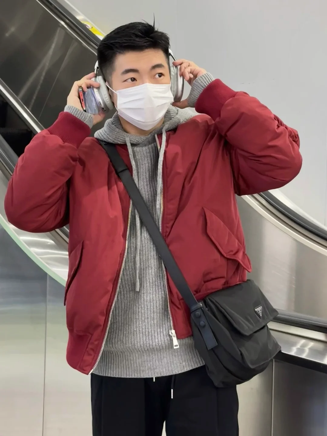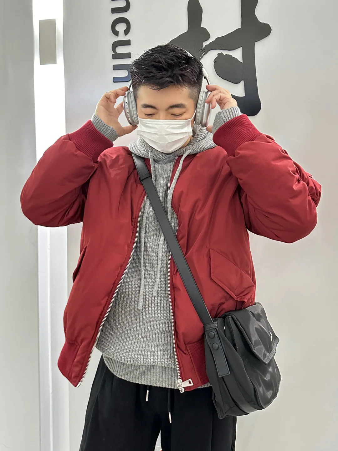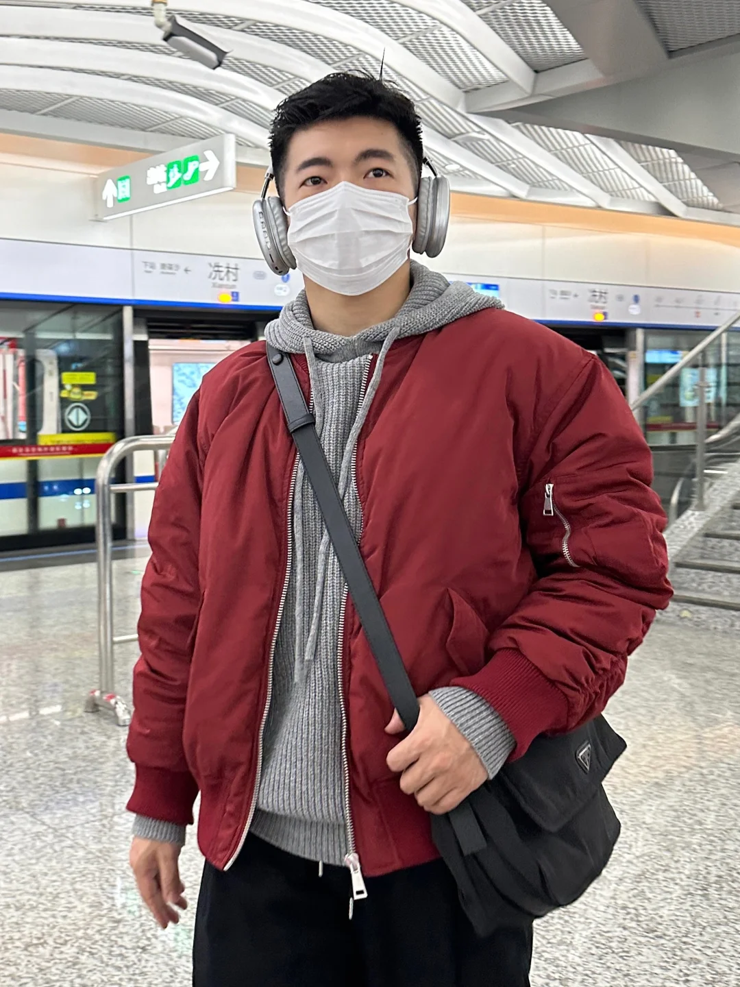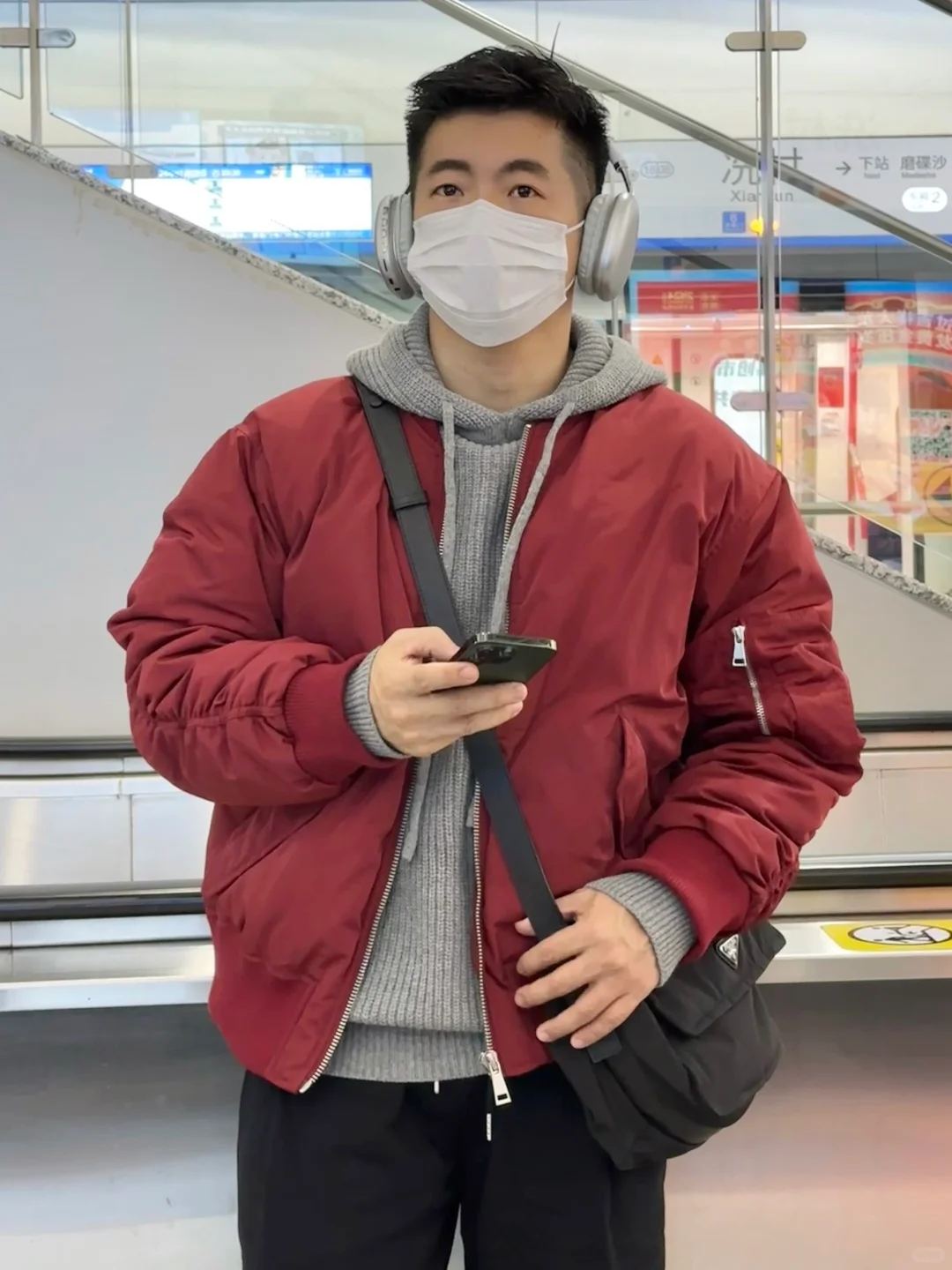 过年想要穿红色,又想穿休闲点,还要兼顾保暖性,我觉得这款酒红色bomber飞行员羽绒夹克可以有。休闲点可以搭配连帽卫衣针织衫或者中高领毛衣,轻熟点搭配衬衫👔也很不错。裤子可以根据不同场景去选择,小个子男生选择这种短款夹克真的显高不压个子。