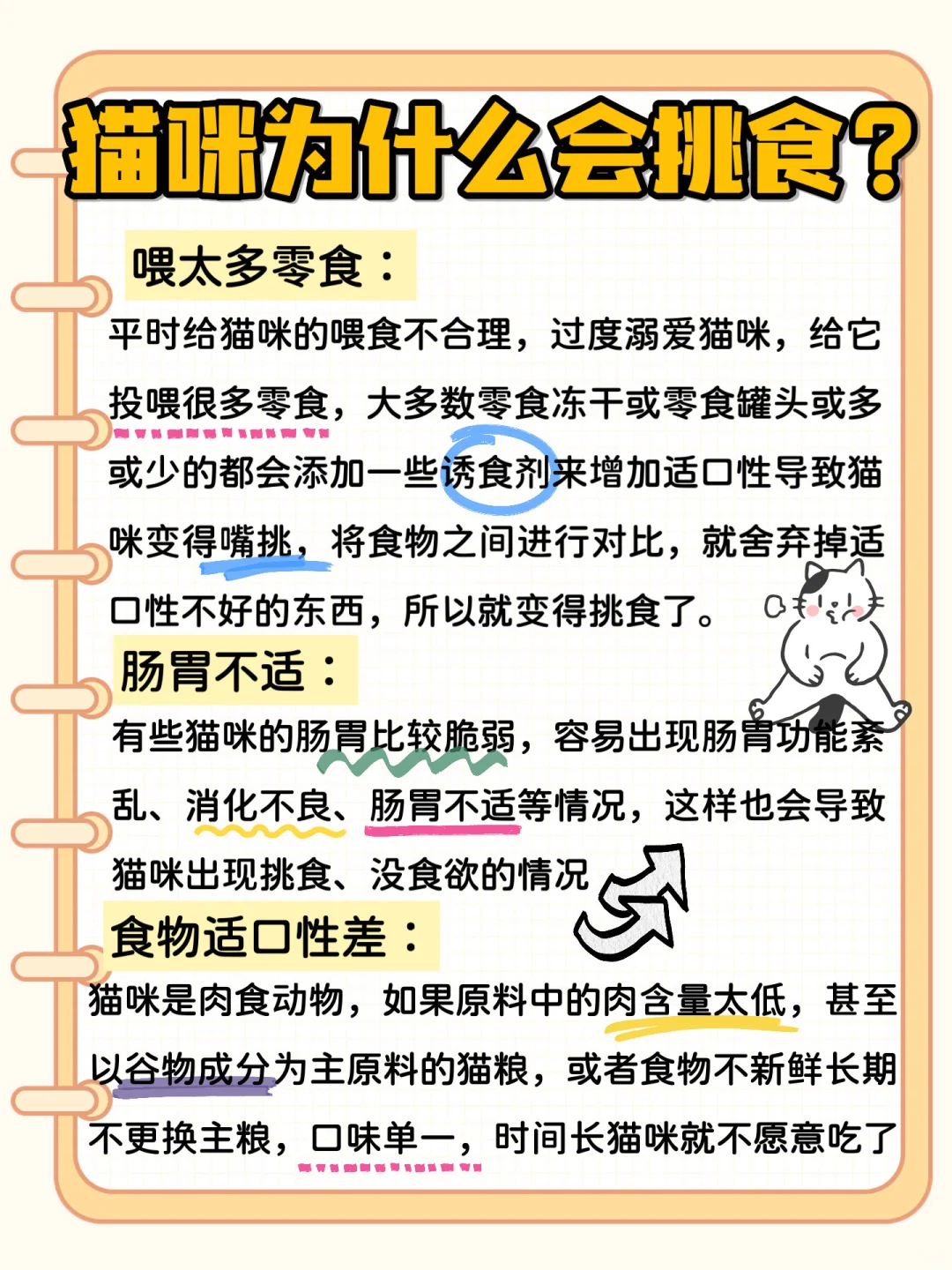有些猫咪的肠胃比较脆弱,容易出现肠胃功能紊乱、消化不良、肠胃不适等情况,这样也会导致猫咪出现挑食、没食欲的情况