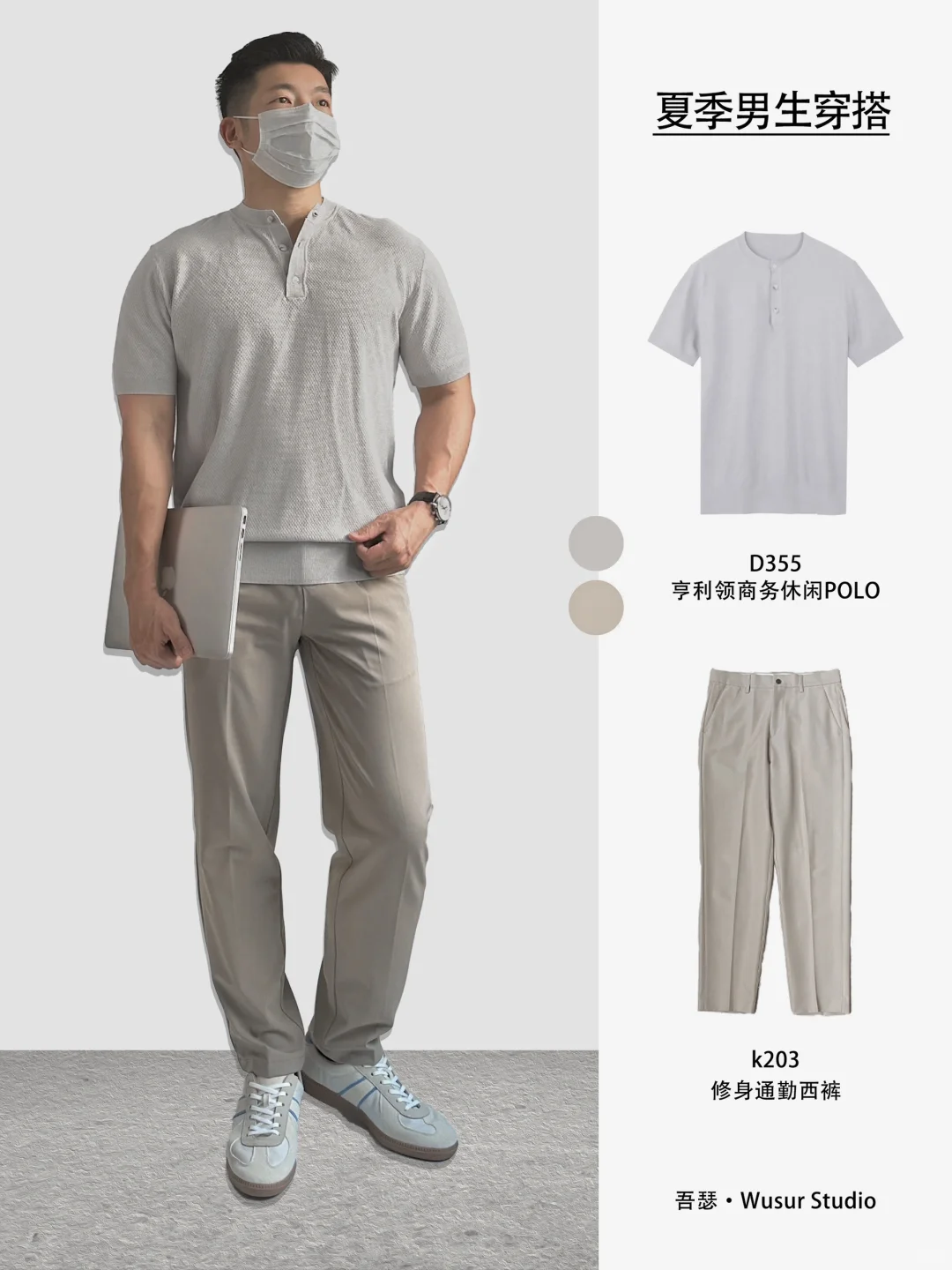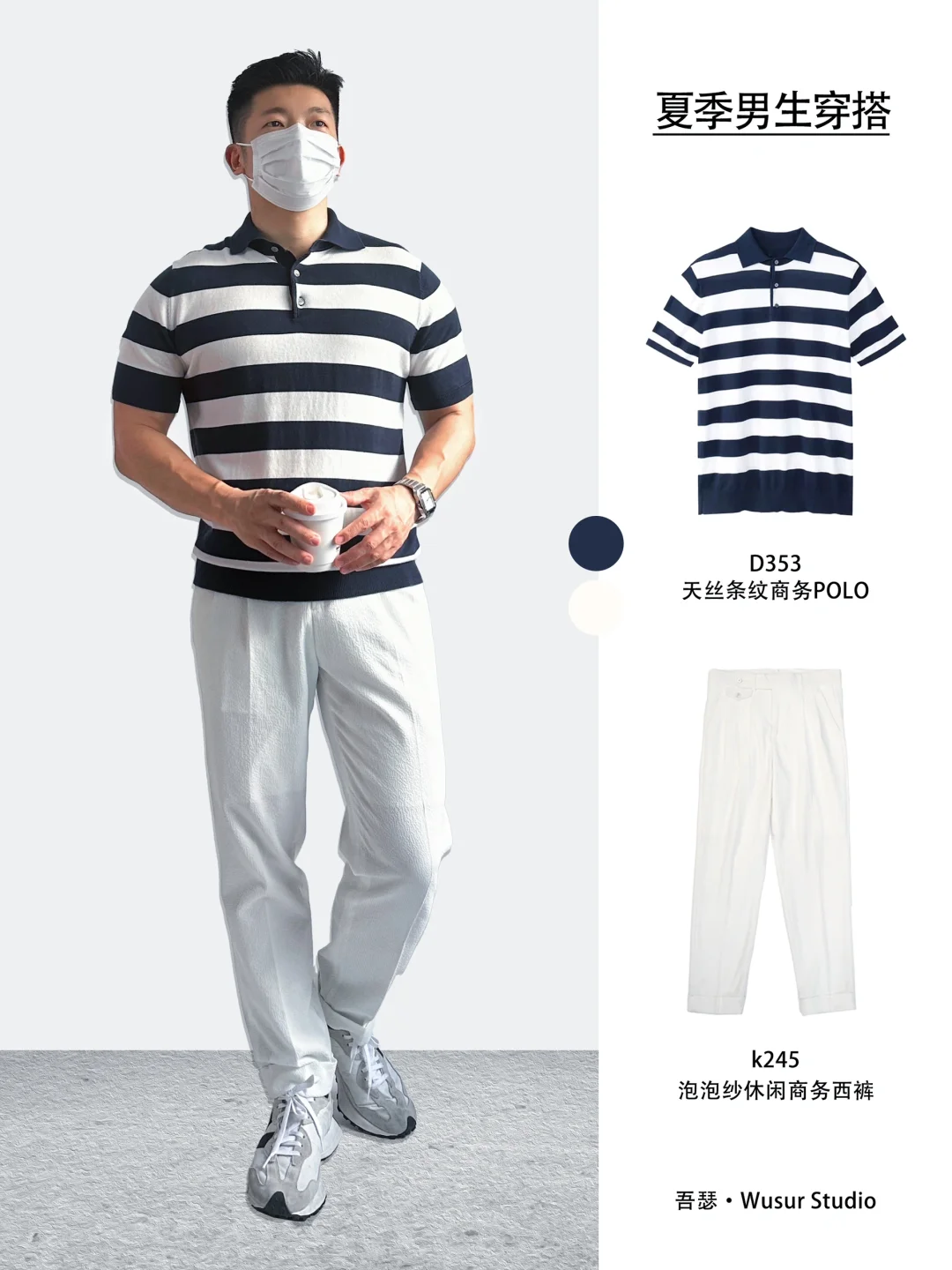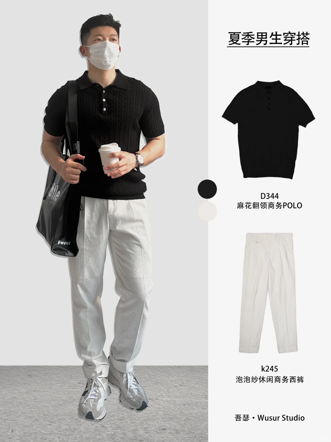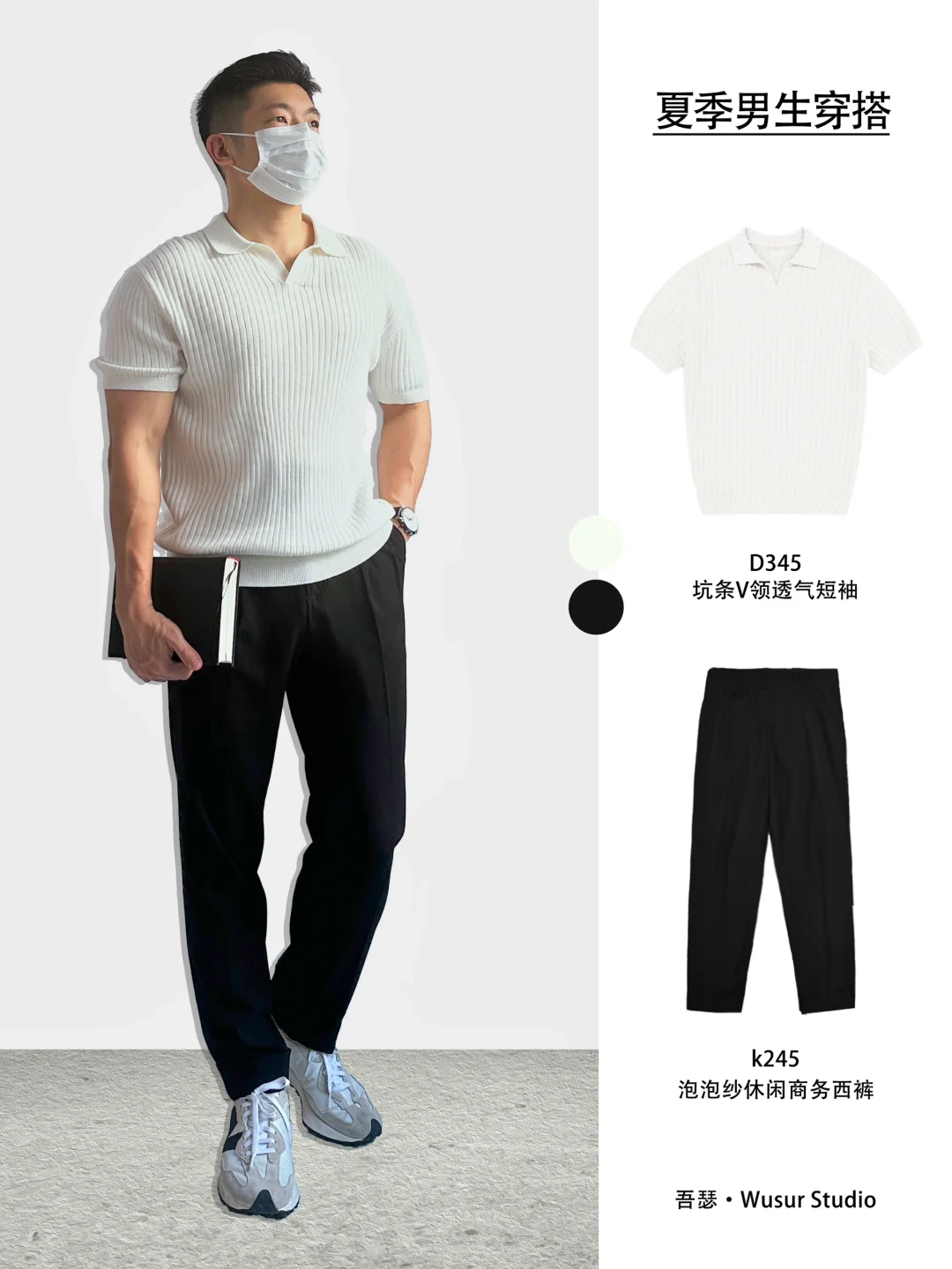 搭配简单西裤、泡泡纱休闲裤、那不勒斯西裤或者牛仔裤都是随性舒适的不挑人穿搭,小个子男生或者偏瘦男生或者微胖男生都很友好,轻松驾驭。