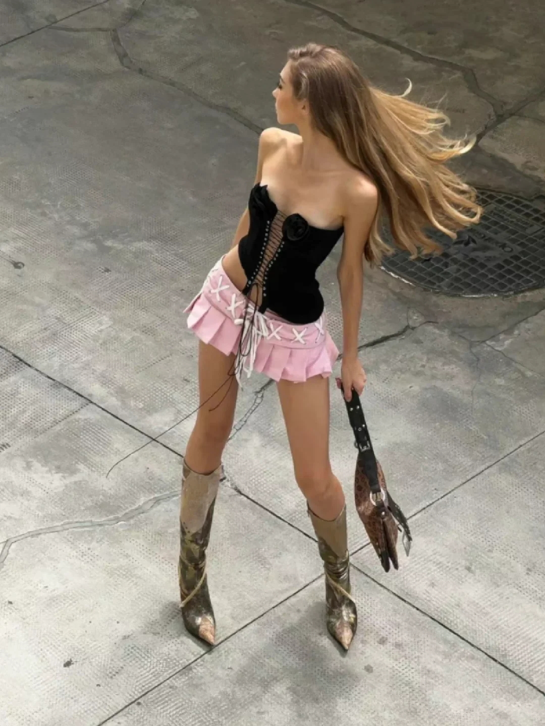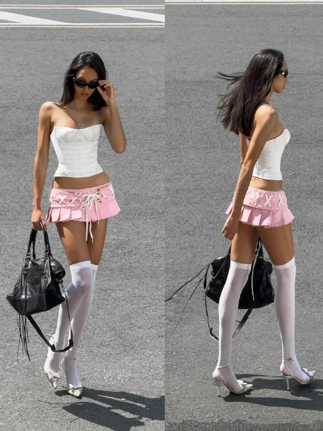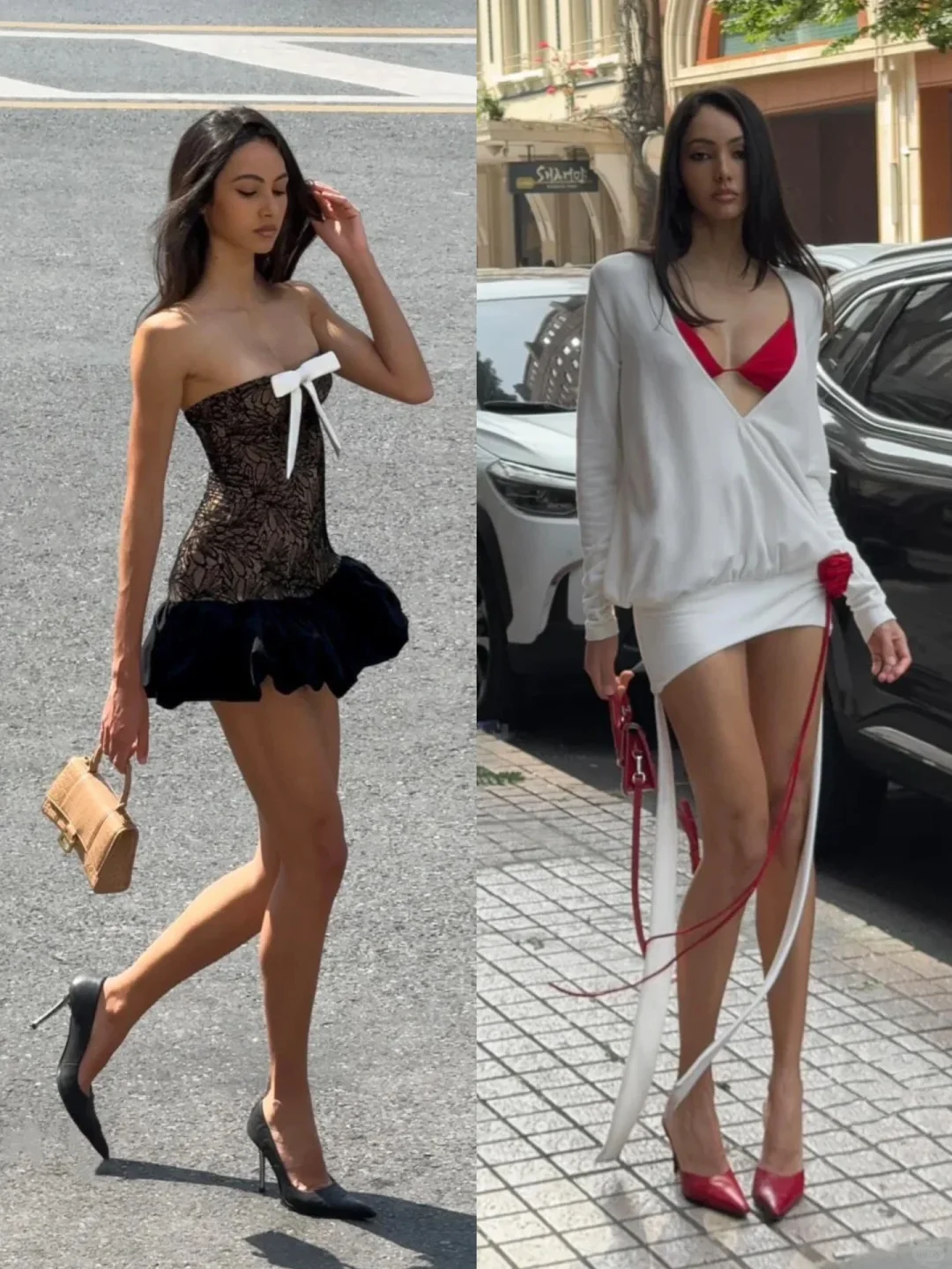 评论区请回答 美式辣妹🖤Huelleyrose❗是来自越南小众品牌 路人俯拍视觉下的模特逆天身材,又飒又美的甜辣风穿搭,让人斯哈斯哈! 妈呀!这腰臀比,我一个女人看了真是羡慕到哭啊