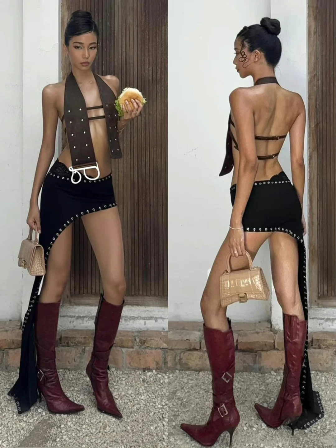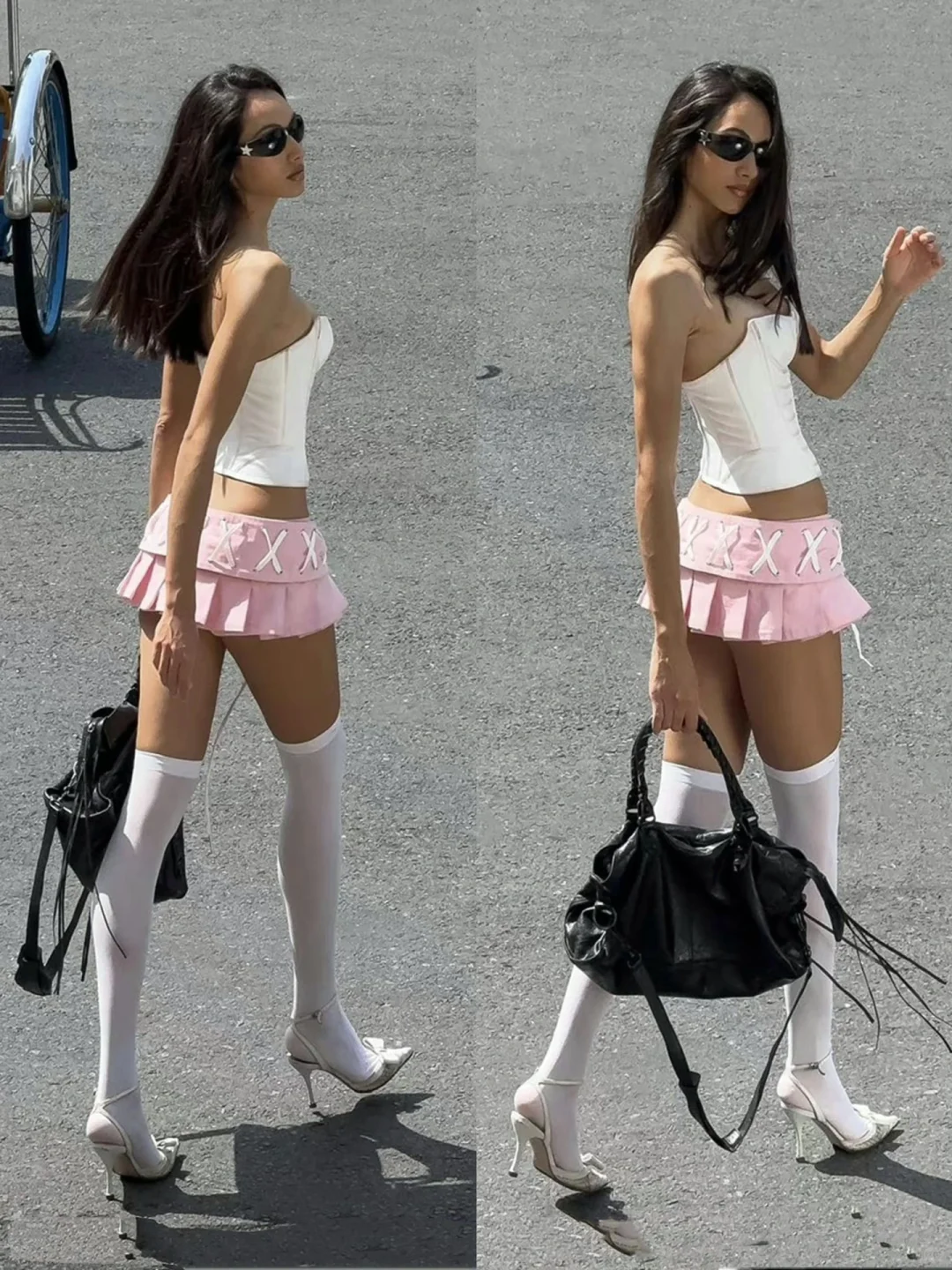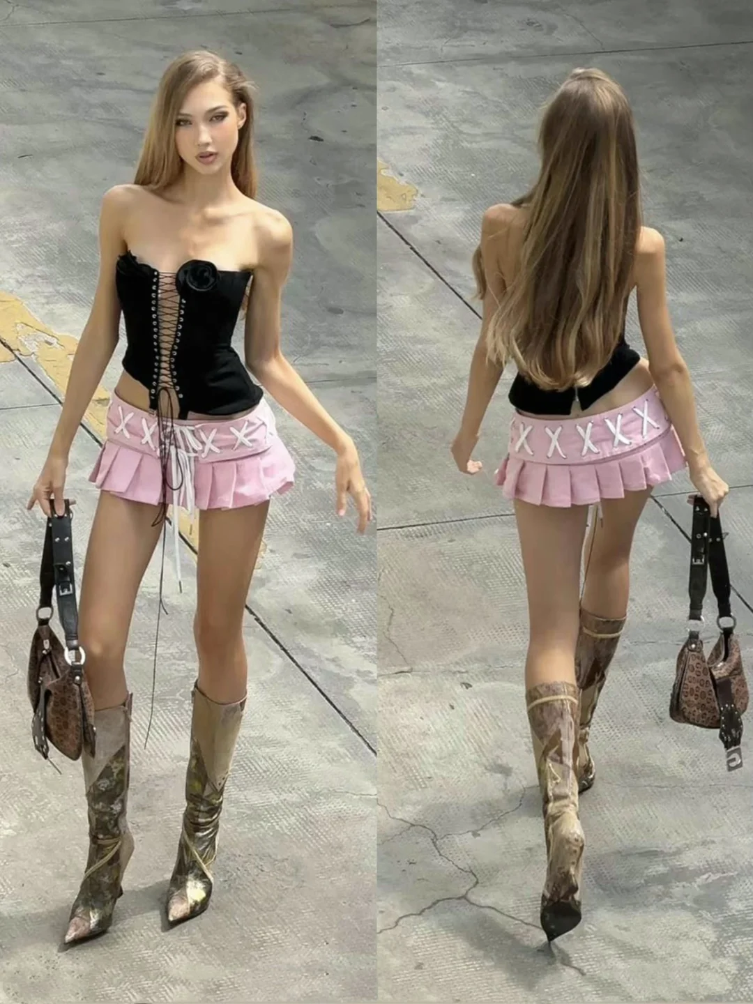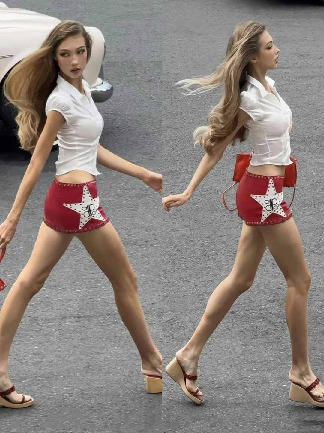 评论区请回答 美式辣妹🖤Huelleyrose❗是来自越南小众品牌 路人俯拍视觉下的模特逆天身材,又飒又美的甜辣风穿搭,让人斯哈斯哈! 妈呀!这腰臀比,我一个女人看了真是羡慕到哭啊