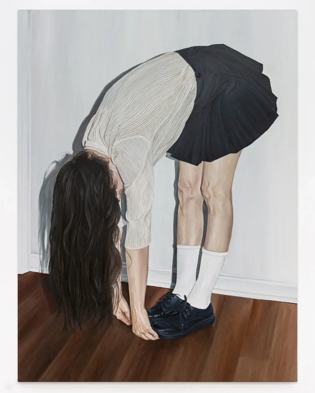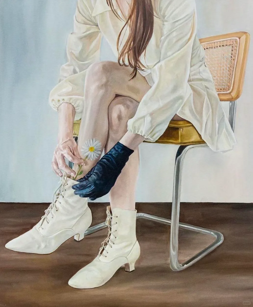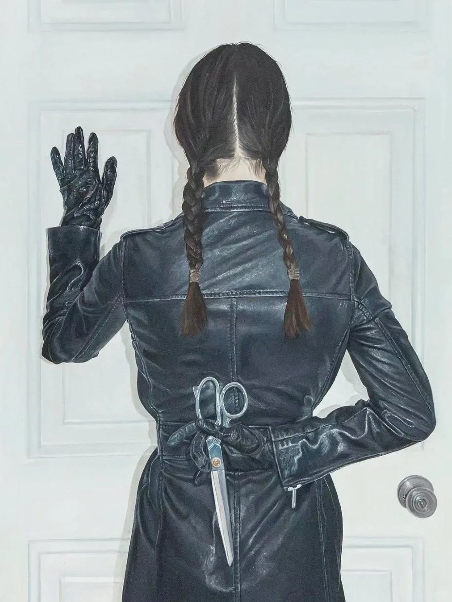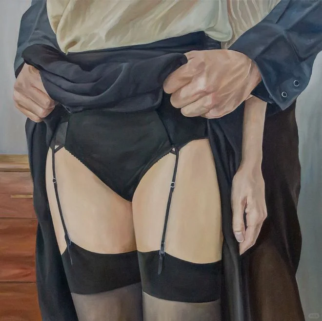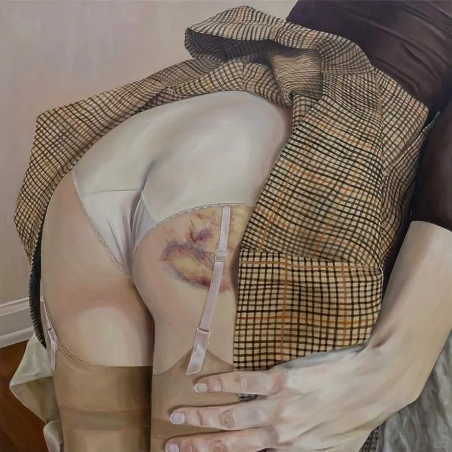 Noelia Towers 绘画的灵感来自于她的慢性疾病和痛苦与快乐之间的关系,以及个人经历,她经常使用自身形象作为探索身体畸形的媒介,并学习如何存在于一个永久患病的环境中,以维持她的健康。她的作品是一种治愈创伤的方法,通过创造来自黑暗地方的图像并将其转化为赋予力量的东西。 Noelia Towers出生于巴塞罗那,现于美国芝加哥工作和生活。Noelia Towers细节丰富的作品采用了照片写实的风格,她的图像是通过拍摄自己并参考其中的主导-顺从的关系而创作的。她的许多画作的主题似乎都遵循快乐与痛苦之间的关系,将柔和的传统女性形象与无所不在的黑暗特征形成鲜明对比。她将画作中的主题描述为“阴影”,与她外表上描绘的自己并列。Towers高度渲染油画引起人们对恋物癖、社会和政治原型以及创伤等主题的深刻心理理解。她的笔触融合了表现元素和浅色厚涂技术,使她的作品具有现代休闲照片中鲜明的数字美学的品质。最终的结果是一系列令人不安的肖像画,反映了艺术家独特的视角。这些作品不是颠覆性的绘画,而是作为对画布作为一种治疗形式的探索的尝试,以女性视角武装起来,笼罩在黑暗和神秘的底色中。通过她超详细的绘画,梦幻般的静物和肖像系列让快乐和痛苦存在于同一个图像之中。