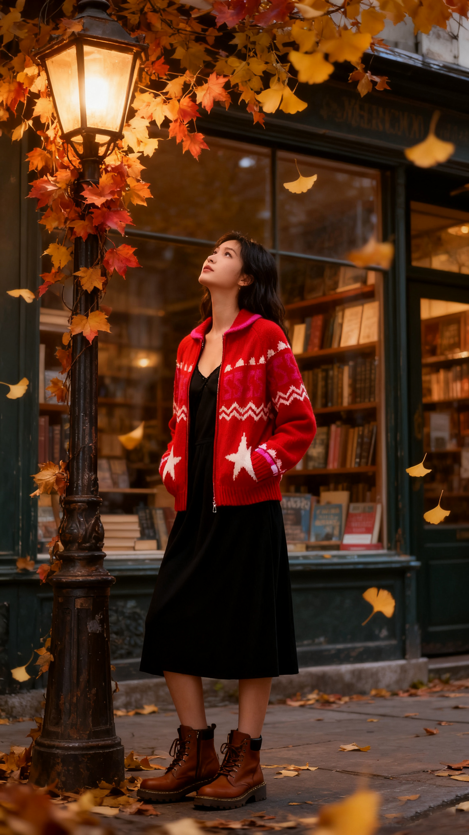 最绝的是 “办公室显白 buff”!之前穿纯色毛衣在白灯下总显暗沉,这件却完全不会 —— 米白底色带点暖调,不是死白,在冷白光下反而能衬得肤色通透,连我这种黄二白,穿它开会时都被同事说 “你今天气色好好”;五角星刺绣的颜色和肤色形成柔和对比,不会显脏,反而让整体穿搭更有层次感,不用费心化妆也能显得精神。