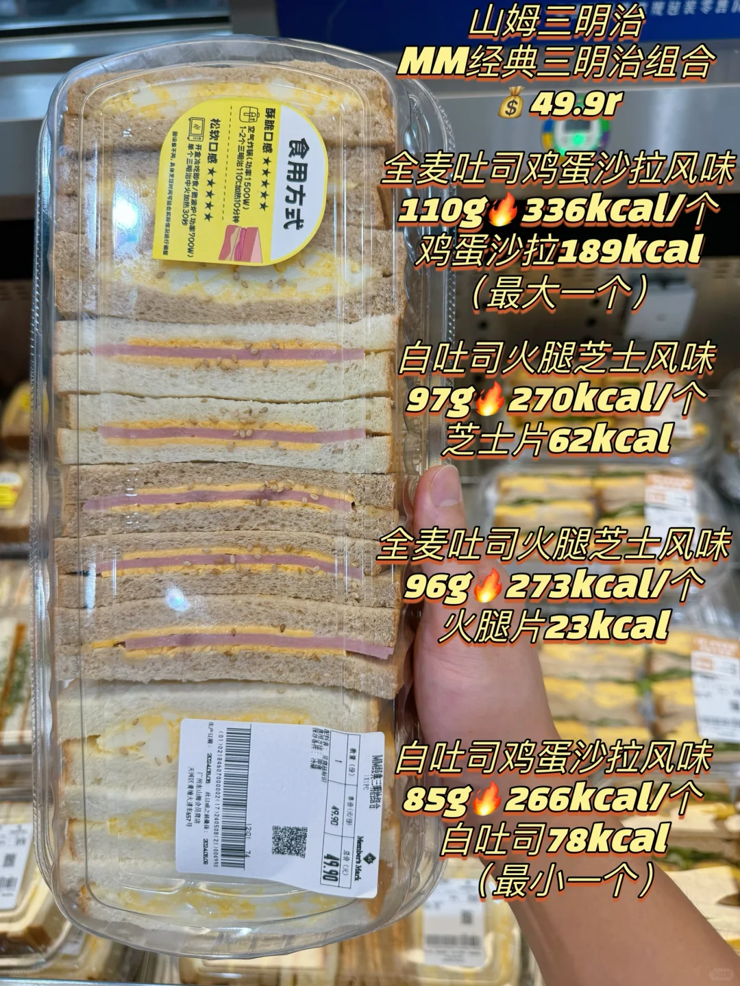 山姆热量测评‼️4款超🔥三明治全拆解测评🥪