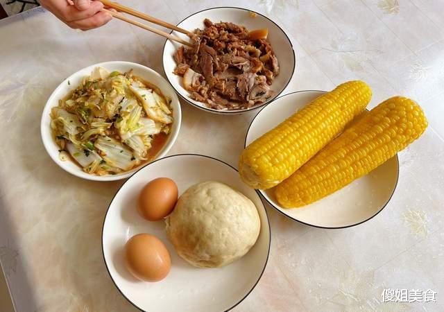 玉米是之前买多了煮熟冷冻的,现在热一下,香甜依旧;馒头是自己蒸好冷冻保存,蒸过后松软可口;鸡蛋蒸熟后剥壳,白嫩Q弹。这三样主食,想吃什么拿什么,随心搭配。