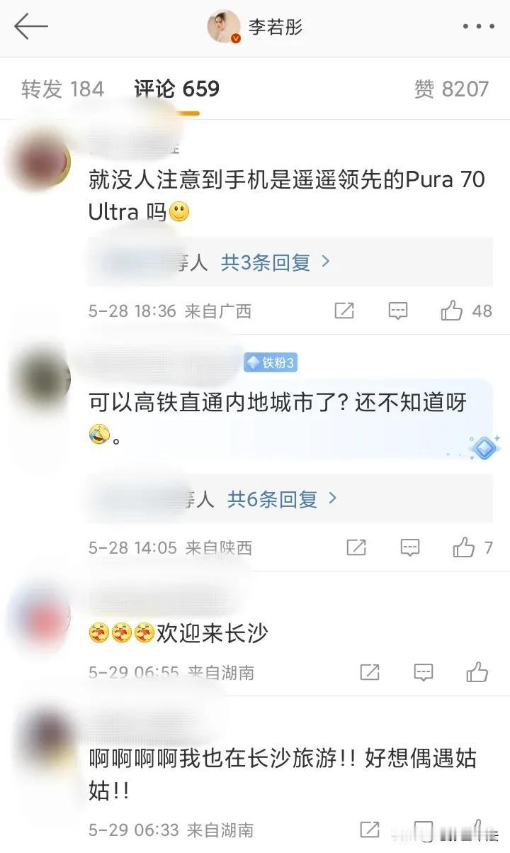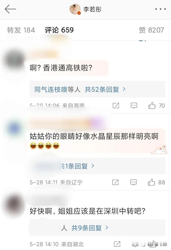5月28日,知名演员李若彤发文称赞中国的高铁,原因是她第一次坐高铁,从香港直达长沙,体验非常的好。